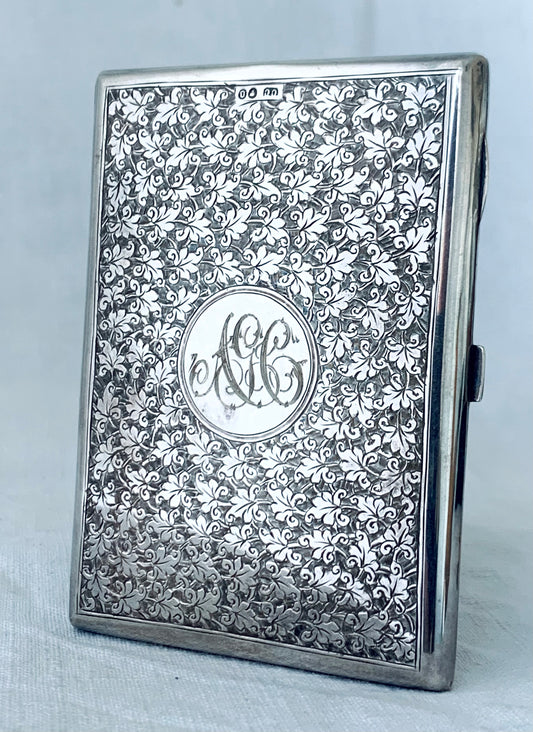 1933 exceptional solid and heavy and sturdy sterling silver English engine turned hallmarked Case