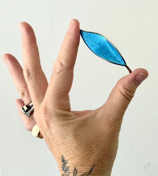 1950s .925 designer David Andersen fine sterling silver designer collectors sky blue enamel leaf brooch