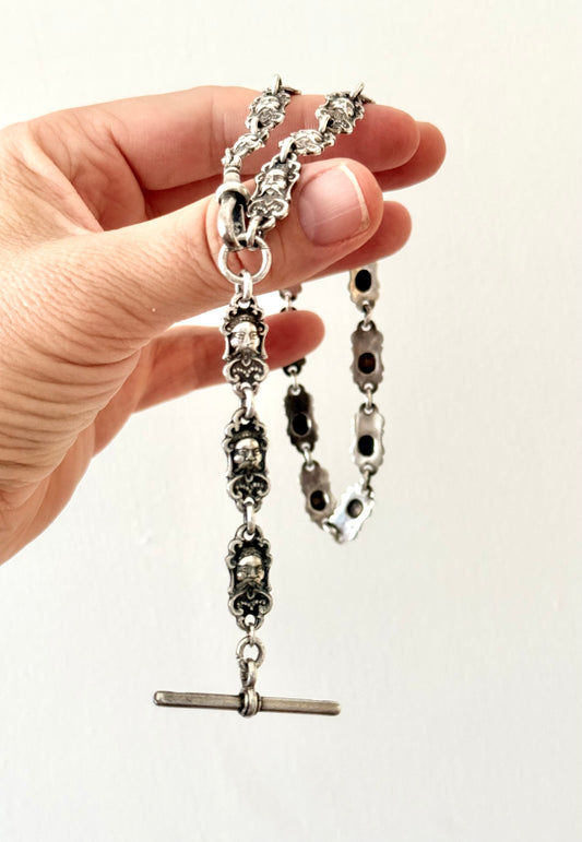 .1880s .1890s .1900s antique truly Rare Japanese Oriental man segmented hallmark silver and silver plated fob chain necklace