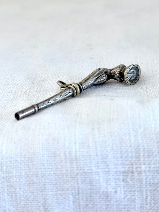 .1880s .1890s antique and rare silver lucky horses hoof Victorian Edwardian figural silver watch winder key pendant.