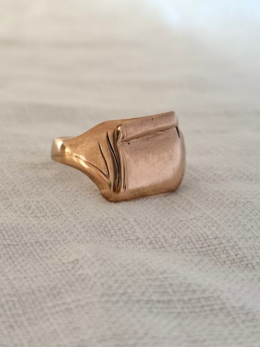 .1930s .375 .9ct rose gold Arts & Crafts Art Nouveau revival free form free flow geometric rectangular signet ring