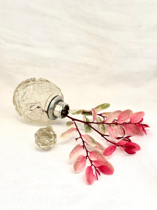.1921 .925 antique Art Deco Edwardian revival cut glass bulb shaped silver collar accent George V round Perfume scent bottle vessel