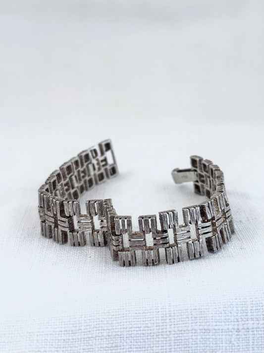 .1950s .925 Brutalist silver rectangular hinged segment silver bracelet