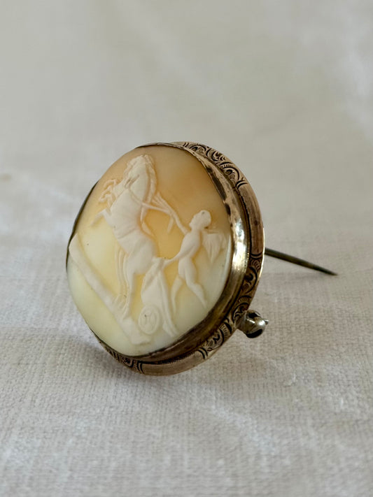 .1850s antique Pax with horses of Mars rare mythology The Genius of Peace Taming the Horses of Mars hand carved cameo brooch