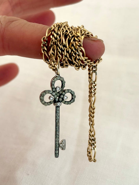 .18ct .750 .60 diamonds Brazilian designer white gold antique revival modernist diamond key luxury 18ct high carat gold and diamond studded romantic clover leaf key pendant