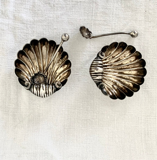 .1902 .925 Antique Clam Shell Cruet salt and pepper sterling silver set in Edwardian antique hallmarked sterling silver