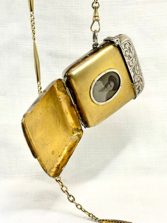 .1901 .925 antique collectors Rare Edwardian Victorian 1901 Sterling Silver Combination Match Vesta Photo frame Locket cheroot case pendant