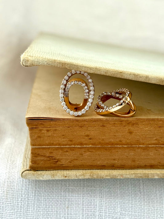 .18ct .750 .80 diamonds Brazilian designer rose gold modernist oval clip clasp luxury 18ct high carat gold and diamond studded earrings