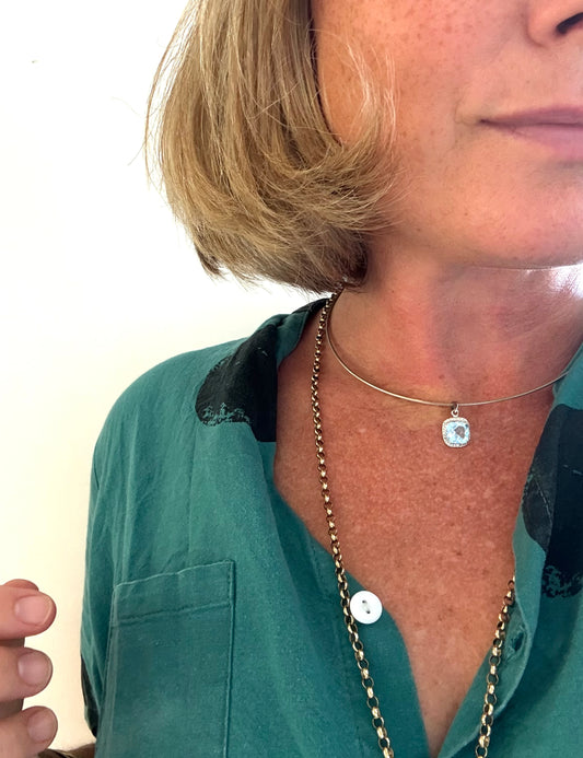.18ct white gold aquamarine blue and .28 diamond luxury modernist rectangular square drop high carat gold pendant on silver cord neckpiece