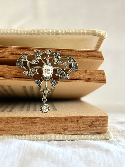 .1890s .1900s Belle Epoque rare Art Nouveau diamond paste floral leaf articulated dangle Edwardian era 800 silver leaf laurel paste gemstone brooch