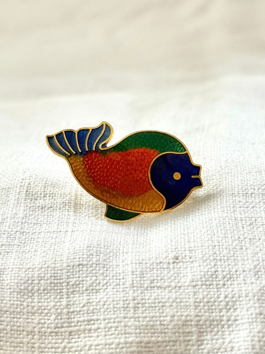 .1970s vintage Red Face colourful enamel fish quirky gold tone bright enamel fun fish costume brooch
