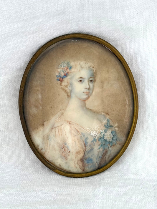 .1880s .1900s antique hand painted miniature dame Victorian era early Edwardian era portrait painting
