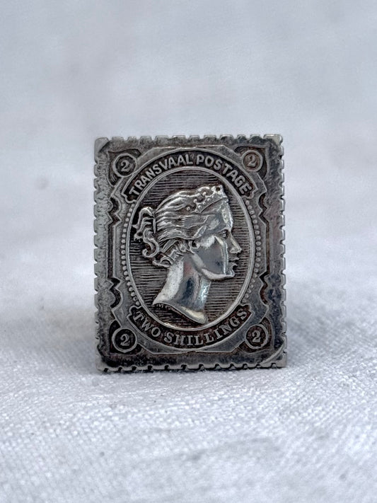 .1878 .925 2 shillings silver postage stamp British Transvaal Victoria circa 1878 rare postage stamp silver ingot brooch
