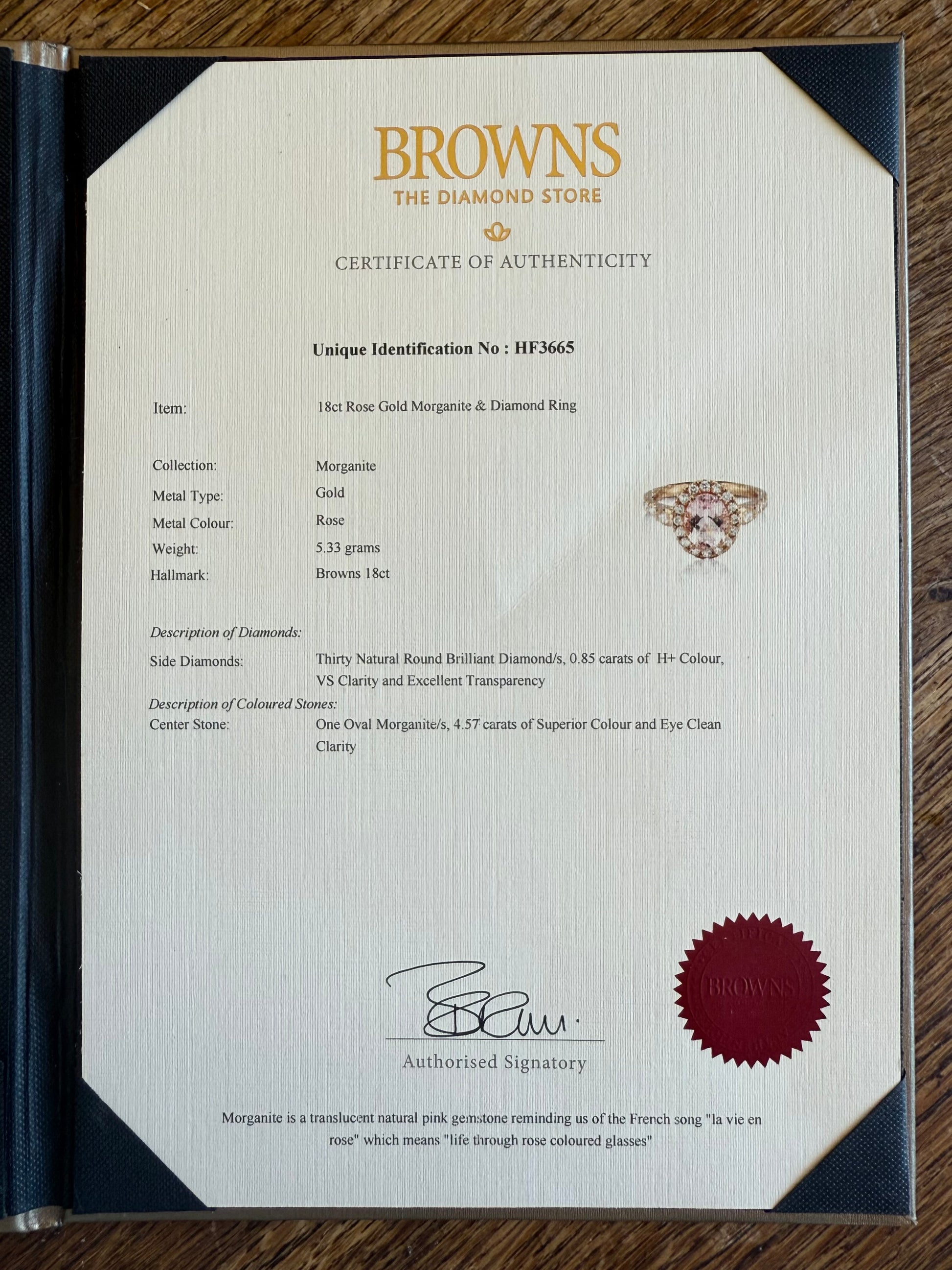 0.85ct 30 Diamond and Browns designer large Oval Pink Morganite gemstone 18ct luxury gold halo ring
