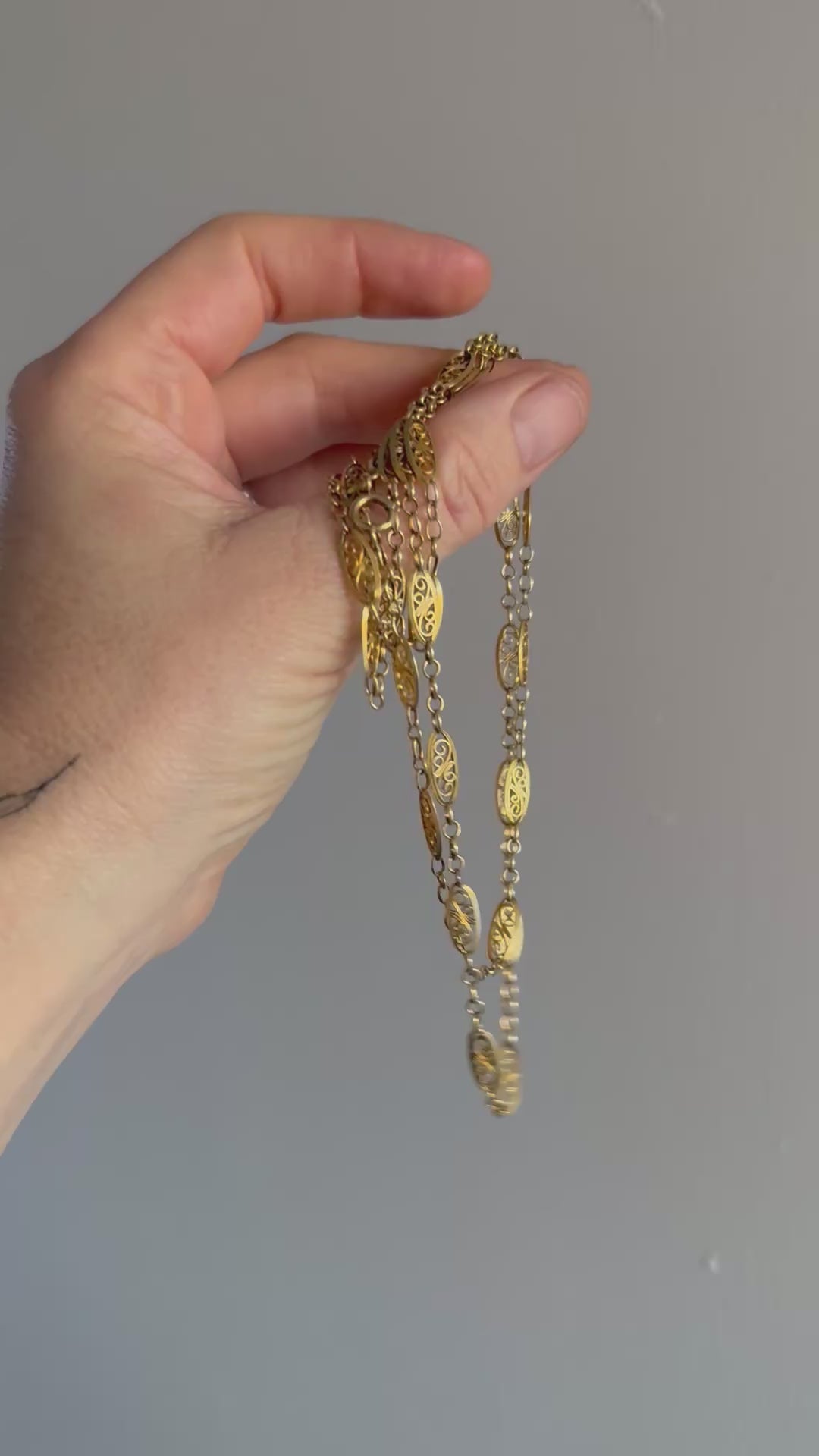 This unmistakable French 18ct gold chain is an antique heirloom and a true treasure in it’s artistic and solid gold value.