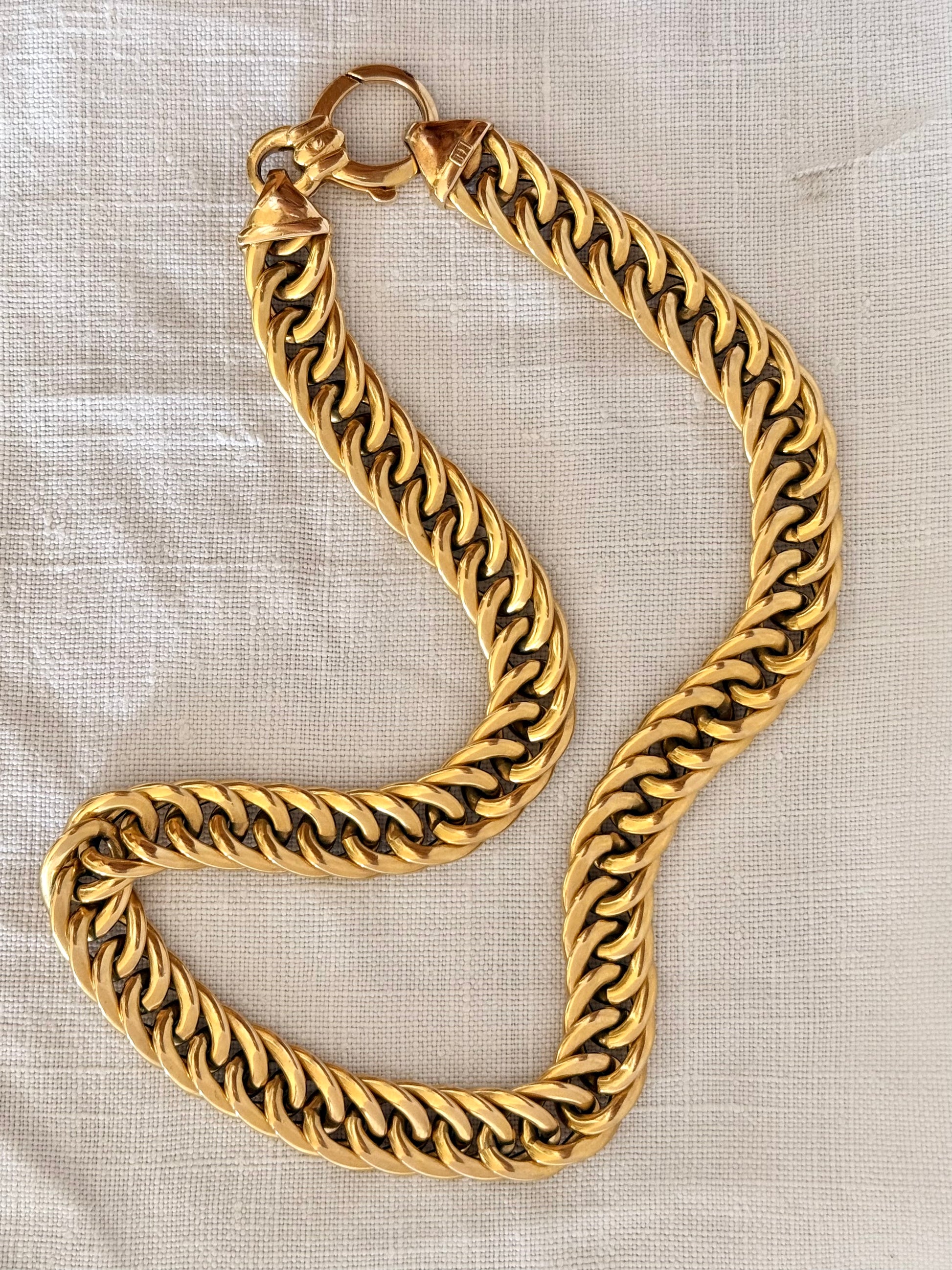The wonderful luxurious gold chain is 46cm long and a chunky 13mm wide and 4mm thick. The links are in wonderful vintage condition and the glorious gold curb chain necklace opens and closes with an oversized and multipurpose lobster clasp mechanism.