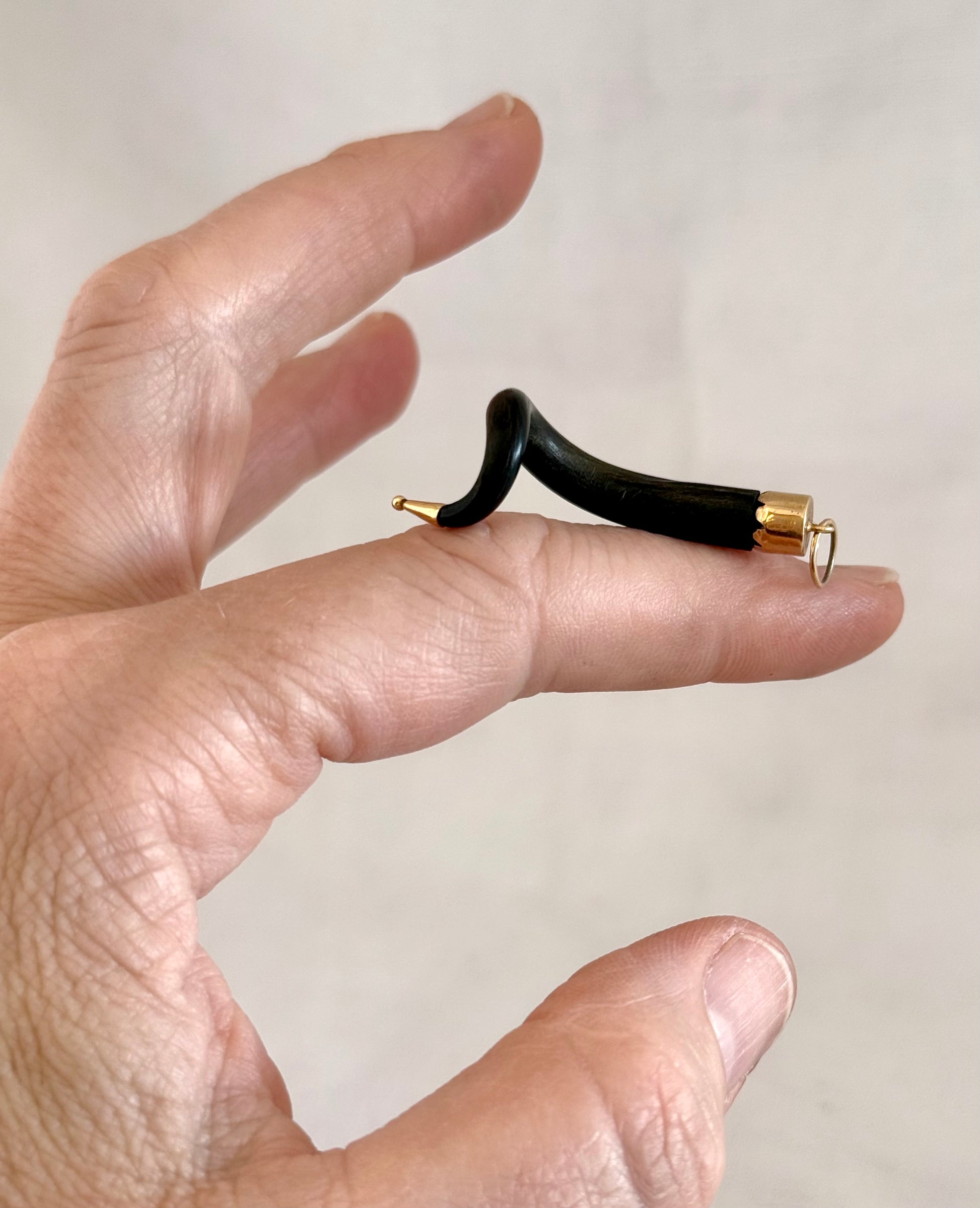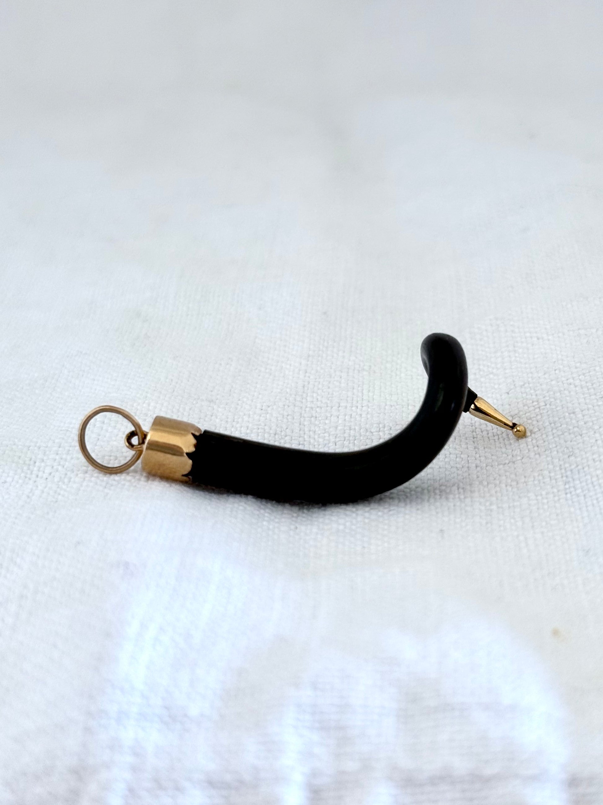.14ct .1880s .1920s .585 gold and natural spiral twist horn amulet pendant