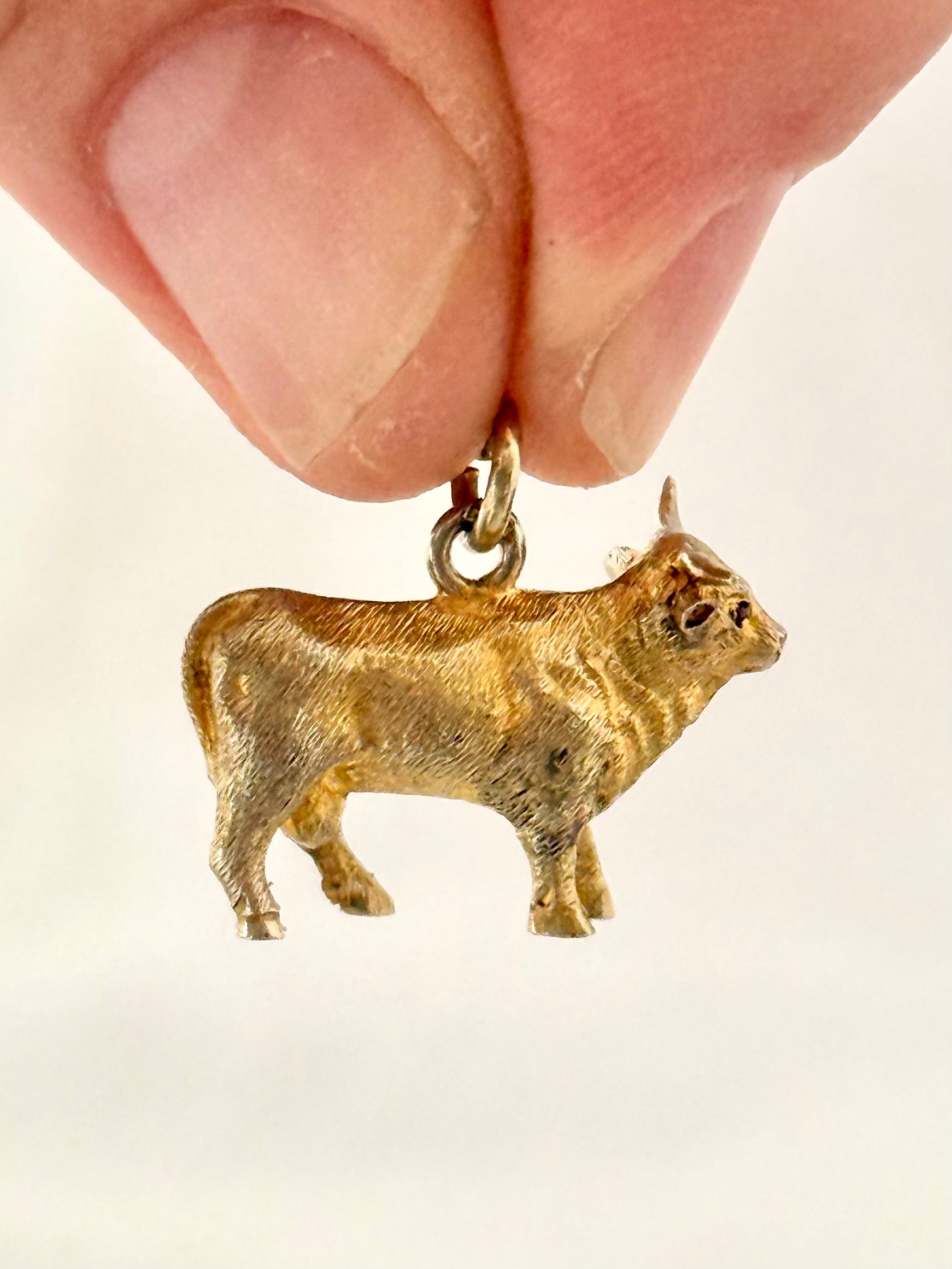 Finely hand made out of high purity 14ct gold, the feisty Heifer bull figurine is finely engraved and detailed.