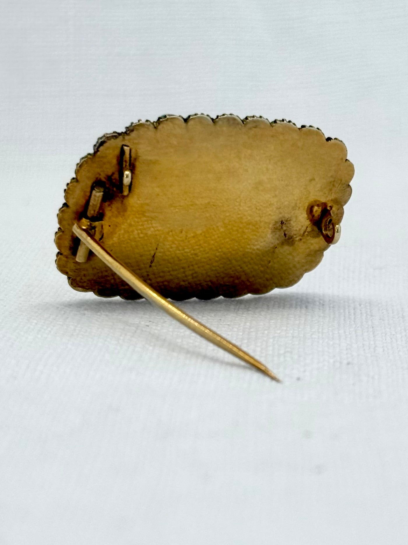 The solid gold brooch is unmarked yet tests positive for higher than 15ct.