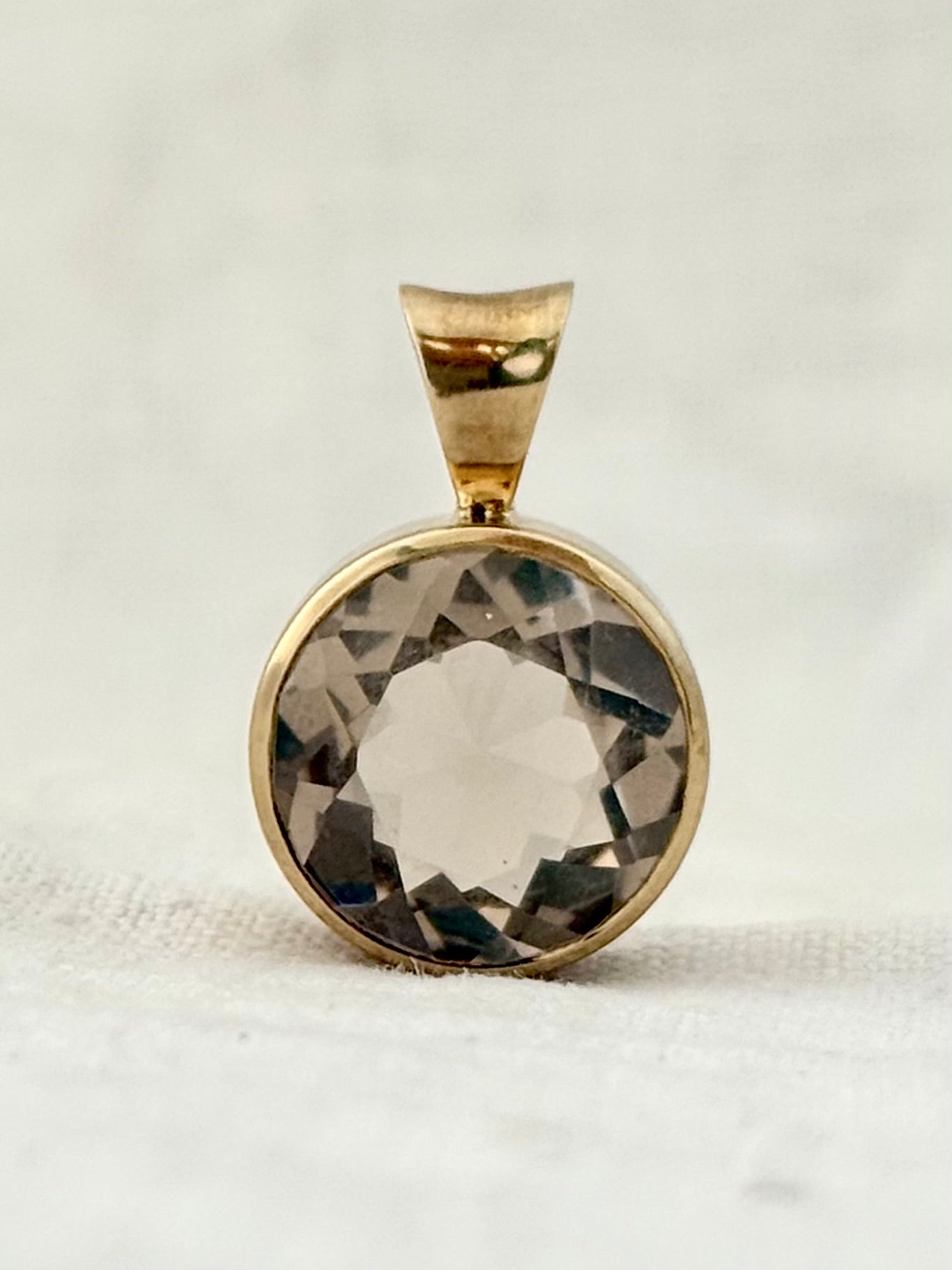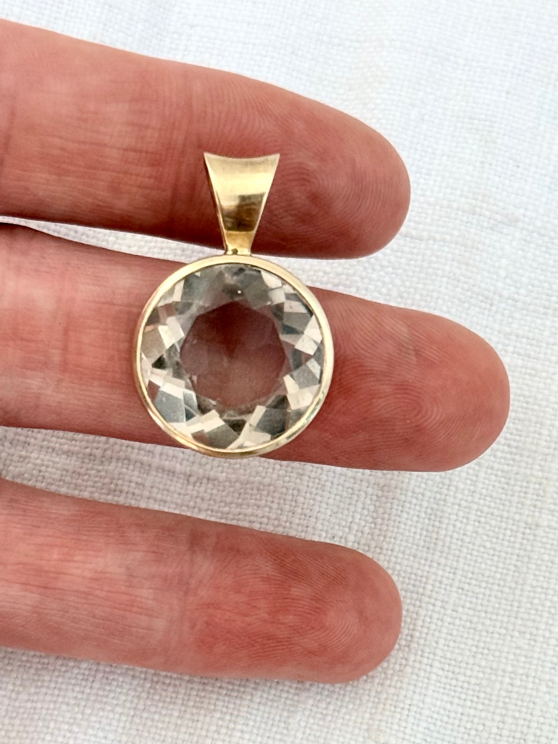 .15ct .1960s .1970s .9ct gold large and magnificent Smoky Quartz bezel set solid gold round statement pendant