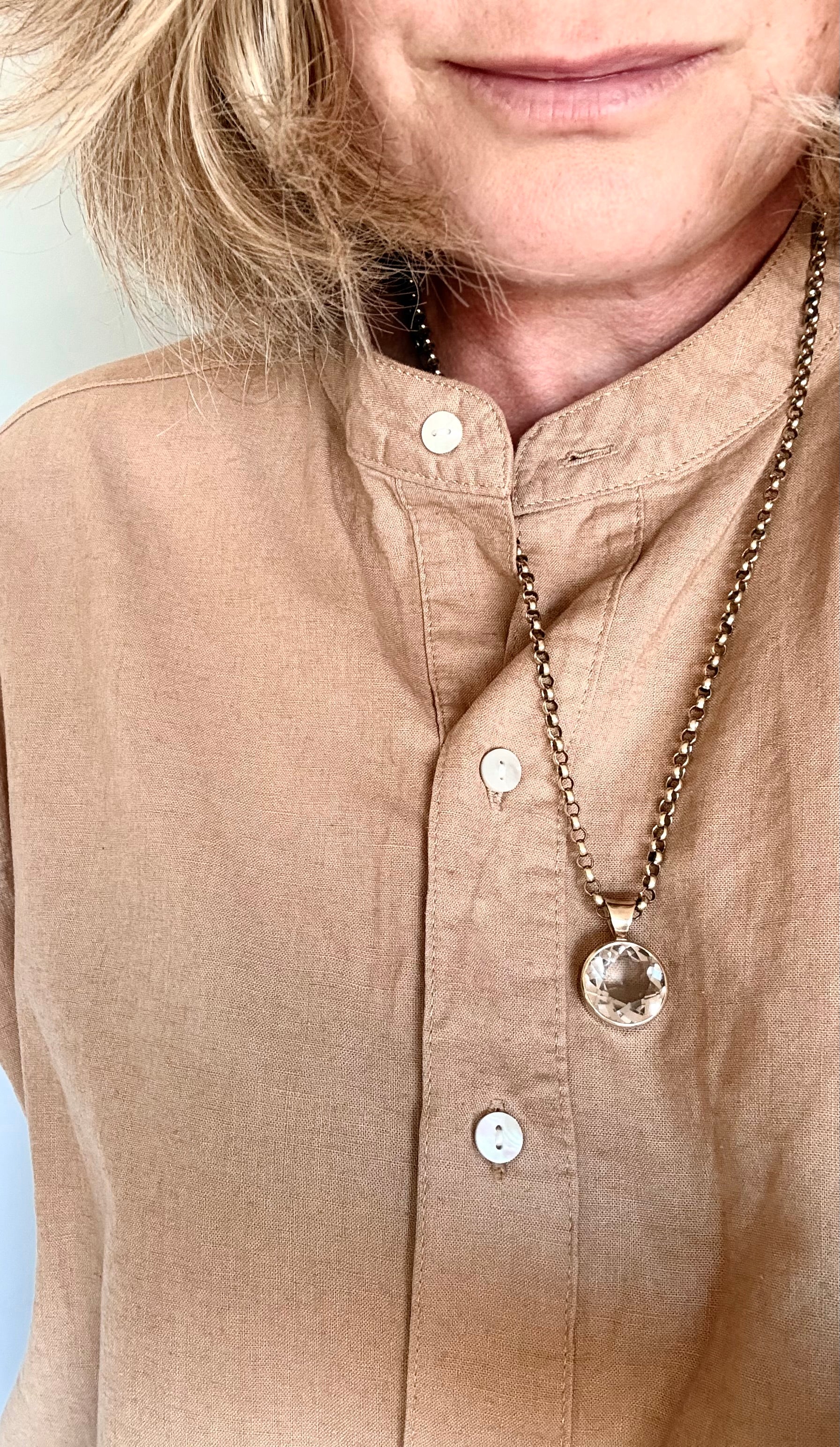 This gloriously diamond cut, round smoky quartz gemstone is a substantial 15ct in estimated gemstone size.