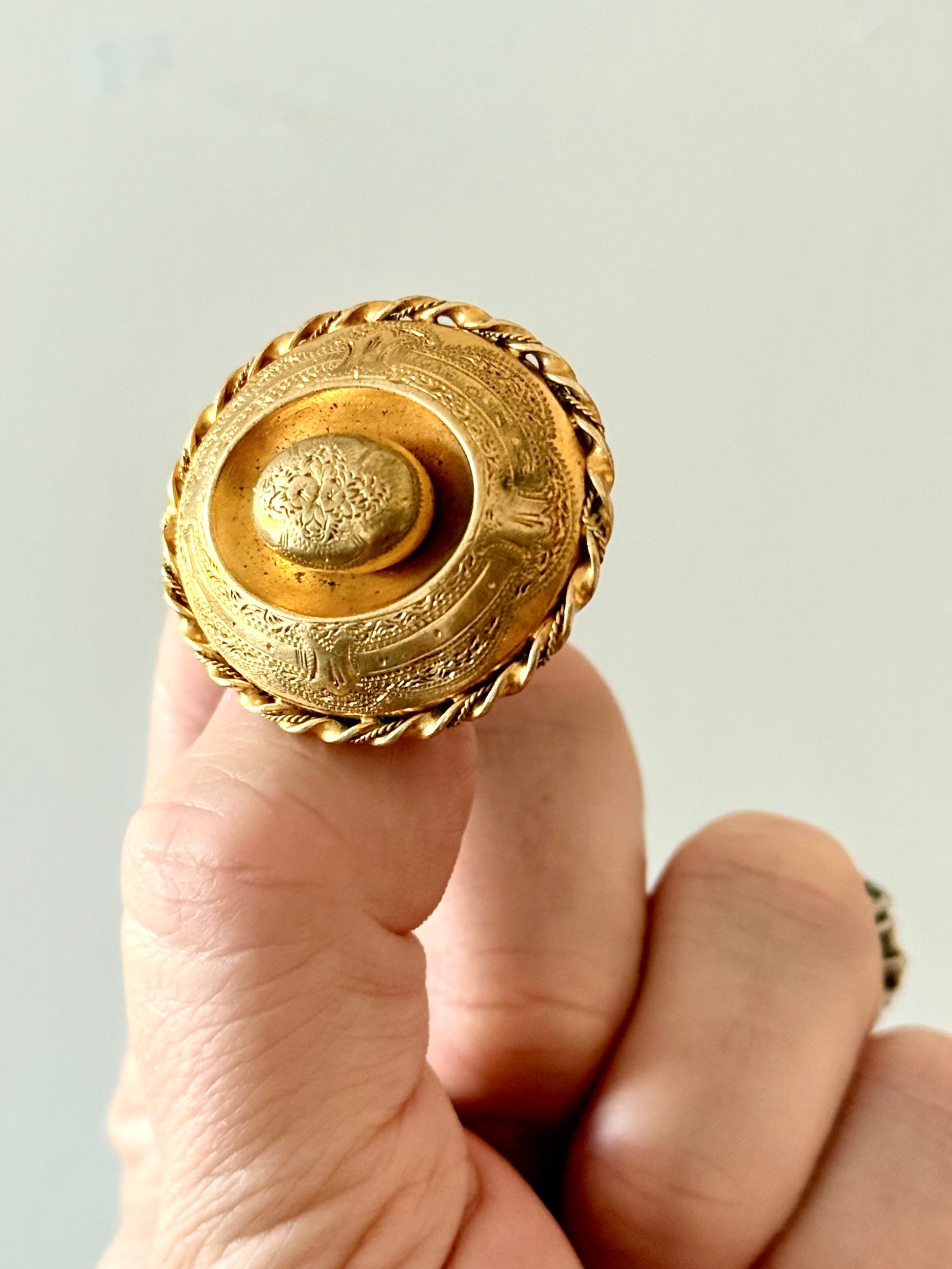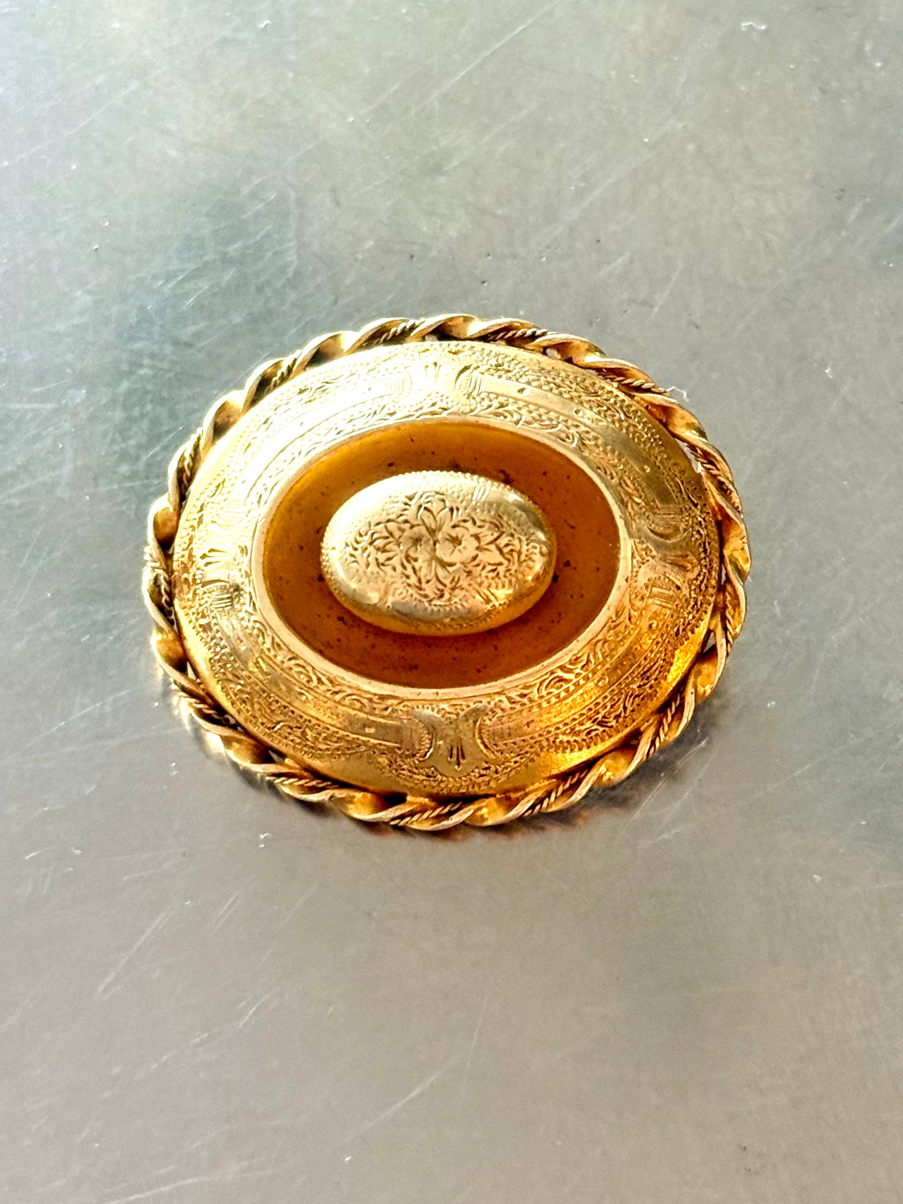 .1800s .1860s 1890s antique Victorian Grand Period fine yellow gold Pinchbeck floral oval target gold sweetheart brooch