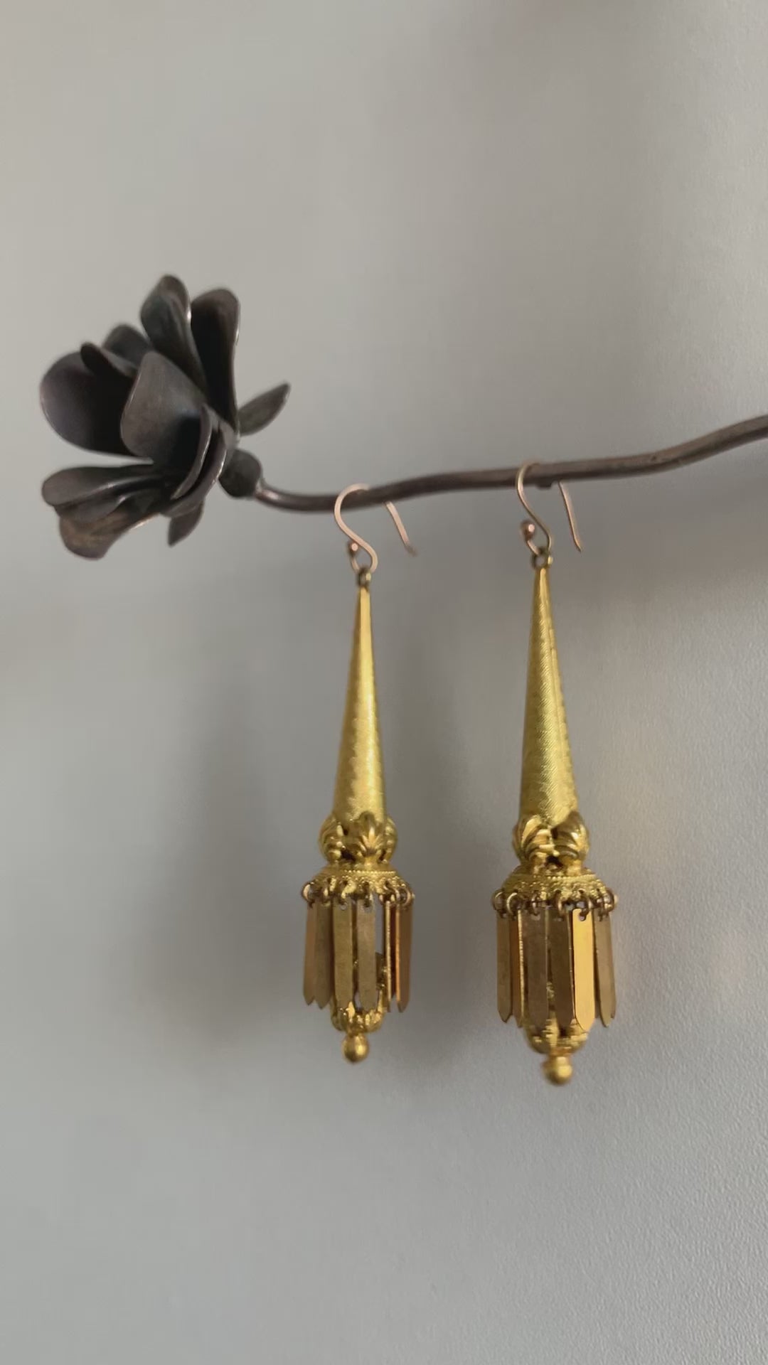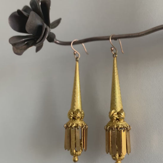 Each torpedo ends in a Renaissance styled scrolling detailing with dangly metal shafts and two intricately detailed caged dangles ending the earrings off. Traditionally the caged dangly could be removed should you wish for something shorter in length. The earrings are incredible.