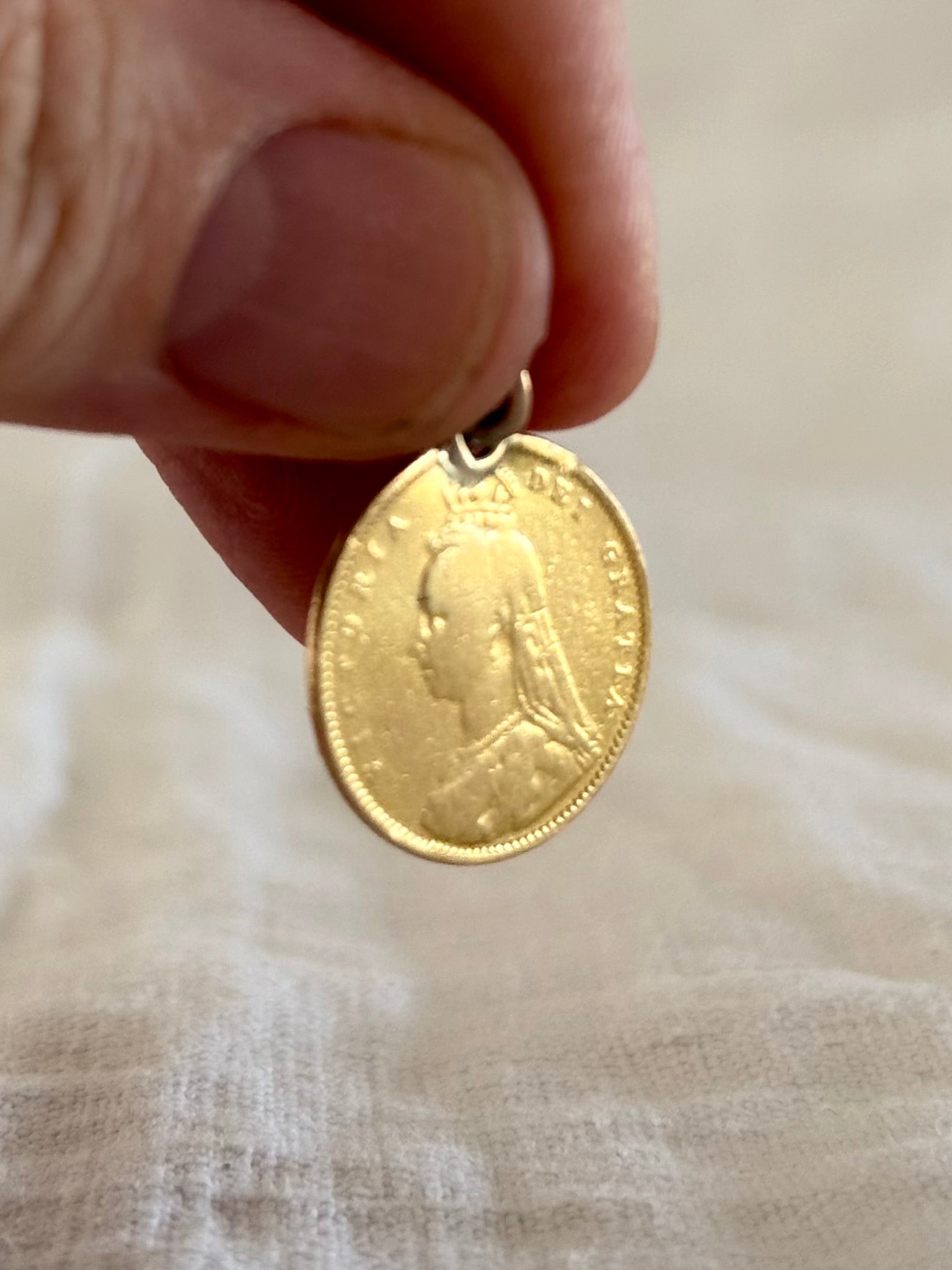 .1890 .22ct gold true antique half sovereign Victorian fine gold coin pendant