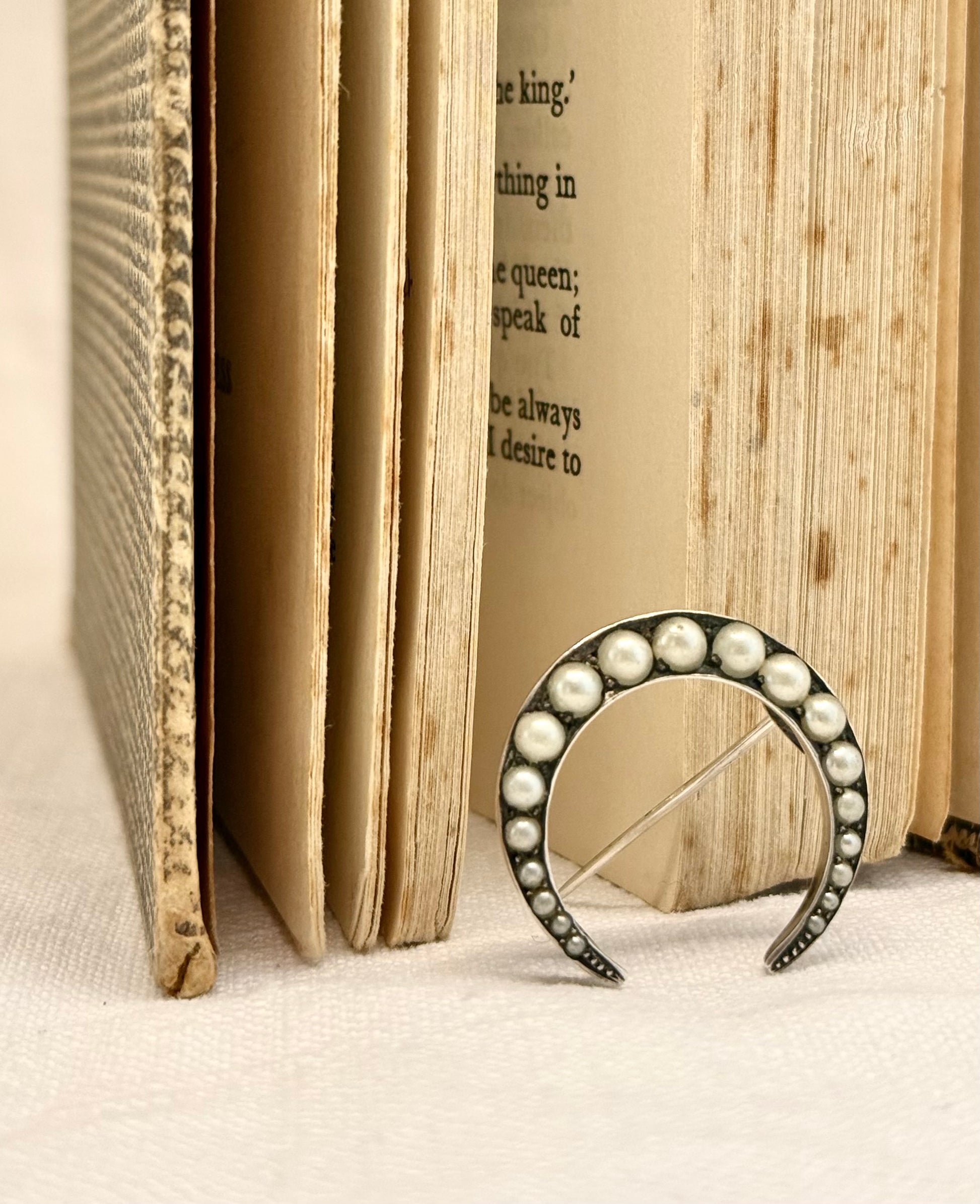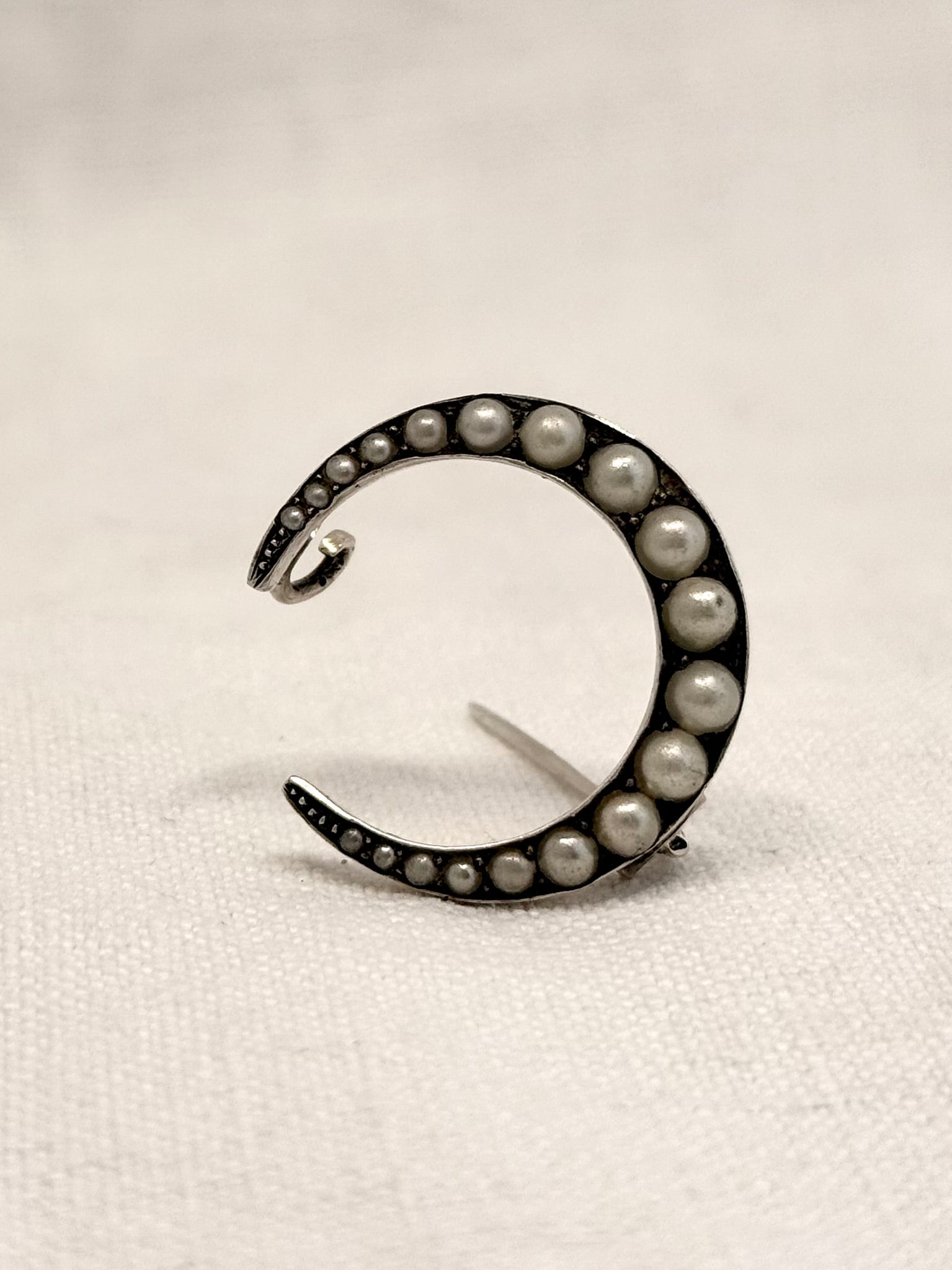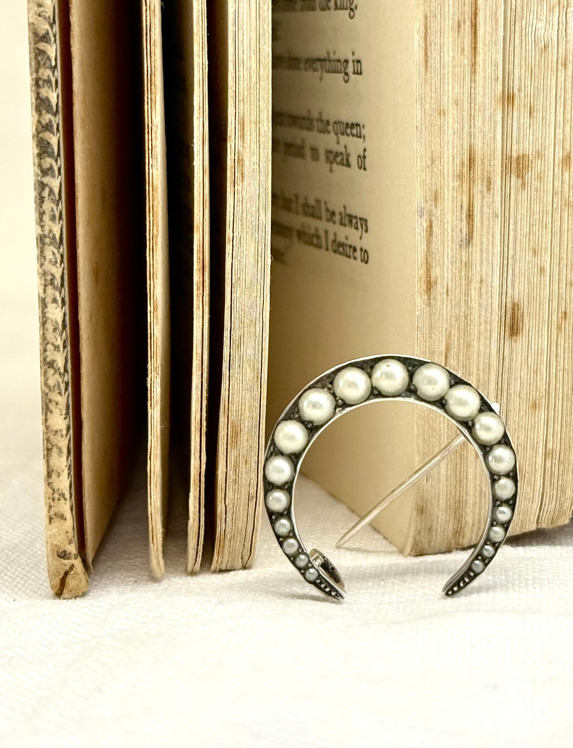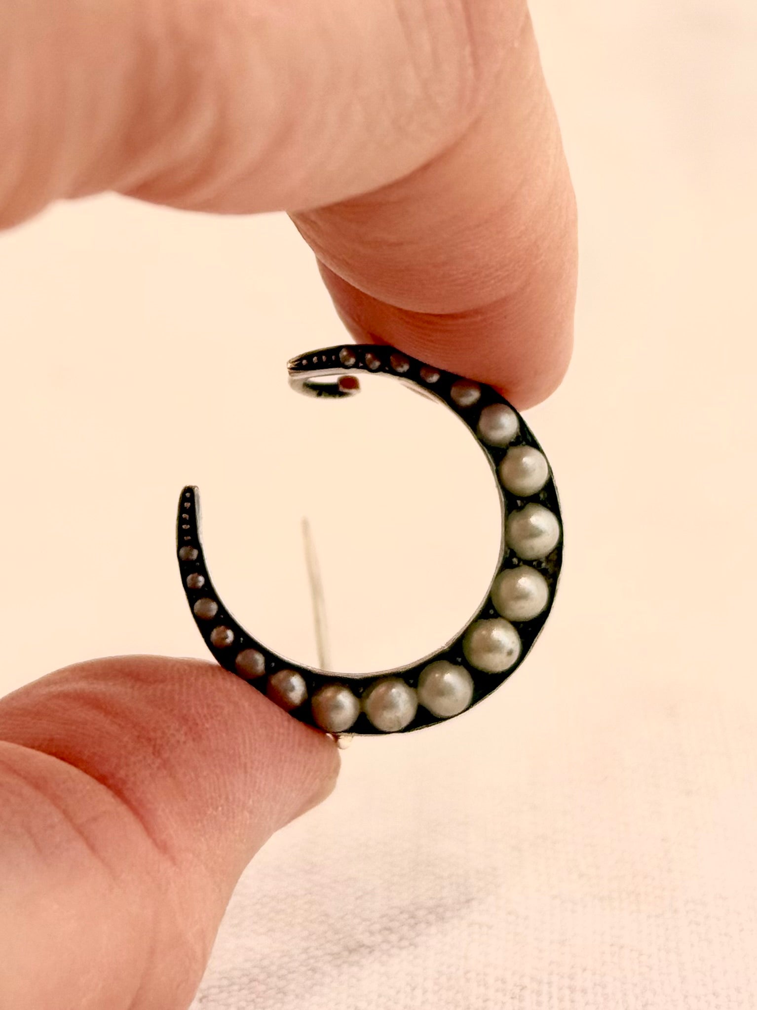 .1890s .1900s antique Art Nouveau beautiful pearl grey seed pearl crescent celestial moon collectors brooch