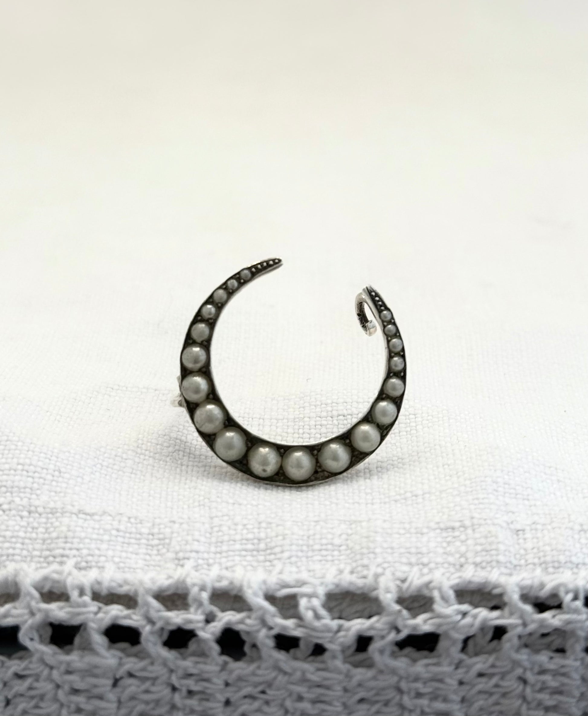 This perfectly preserved and compact crescent pearl brooch held the symbolism of femininity, love, and a connection to the divine feminine. The Victorians held the crescent moon as a token of female empowerment and spiritual guidance.