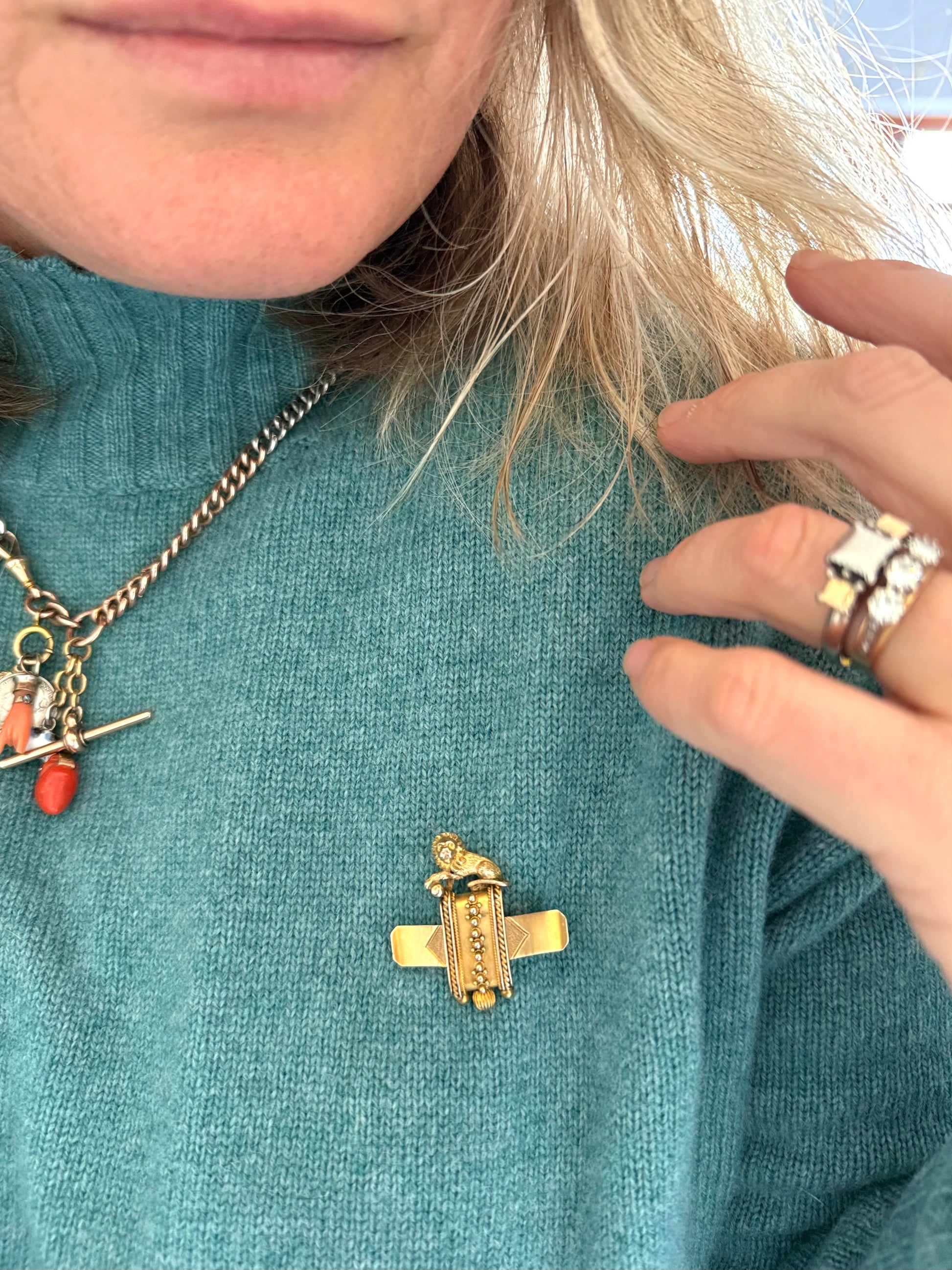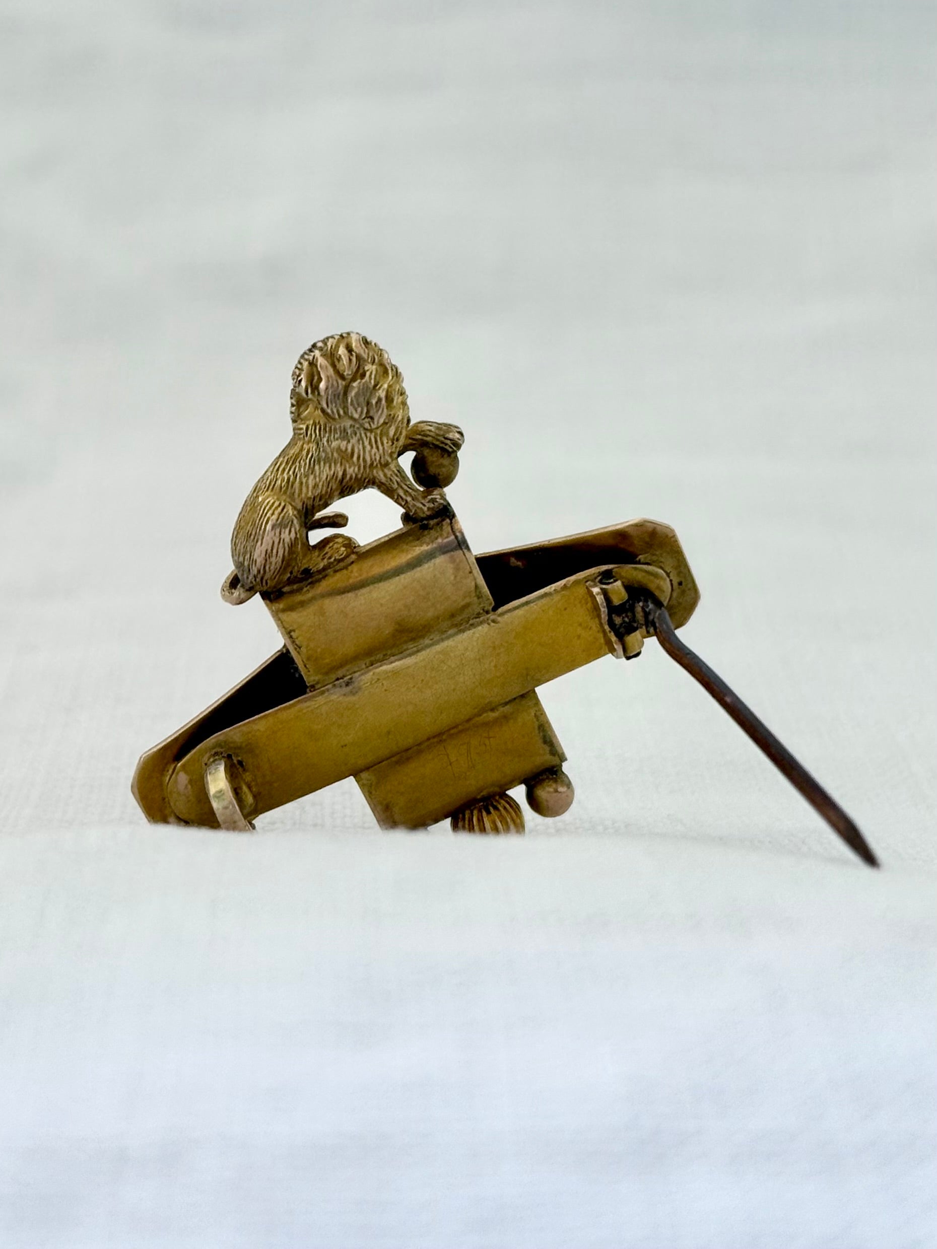 .18ct .1860s .750 standard gold Antique rare Etruscan Revival Brooch in 18ct Yellow Gold – Lion Motif with Granulation