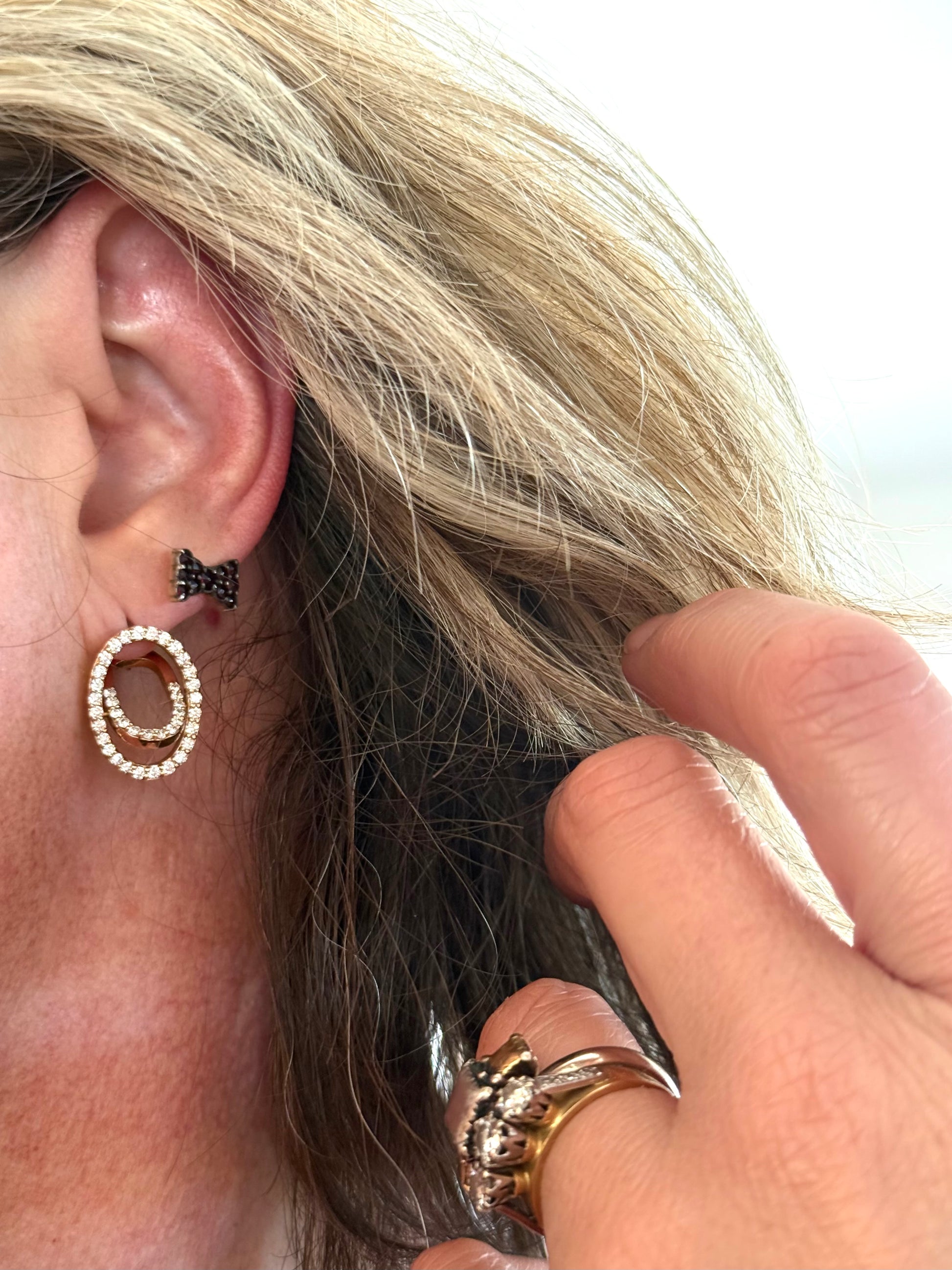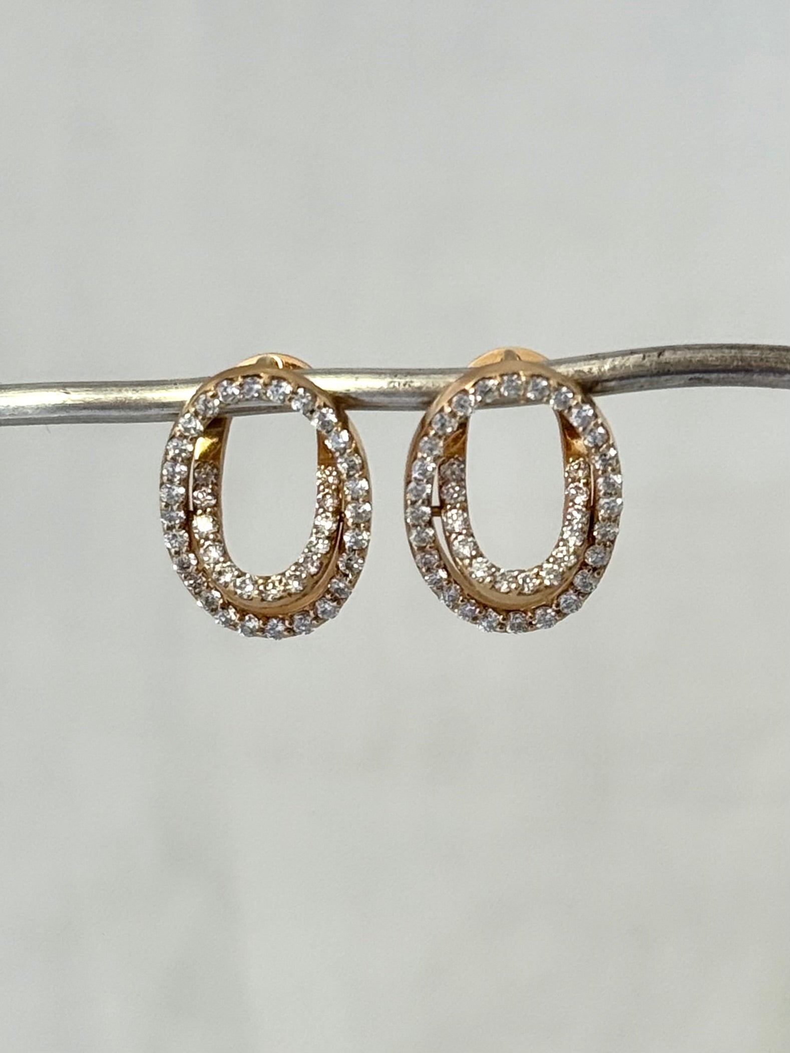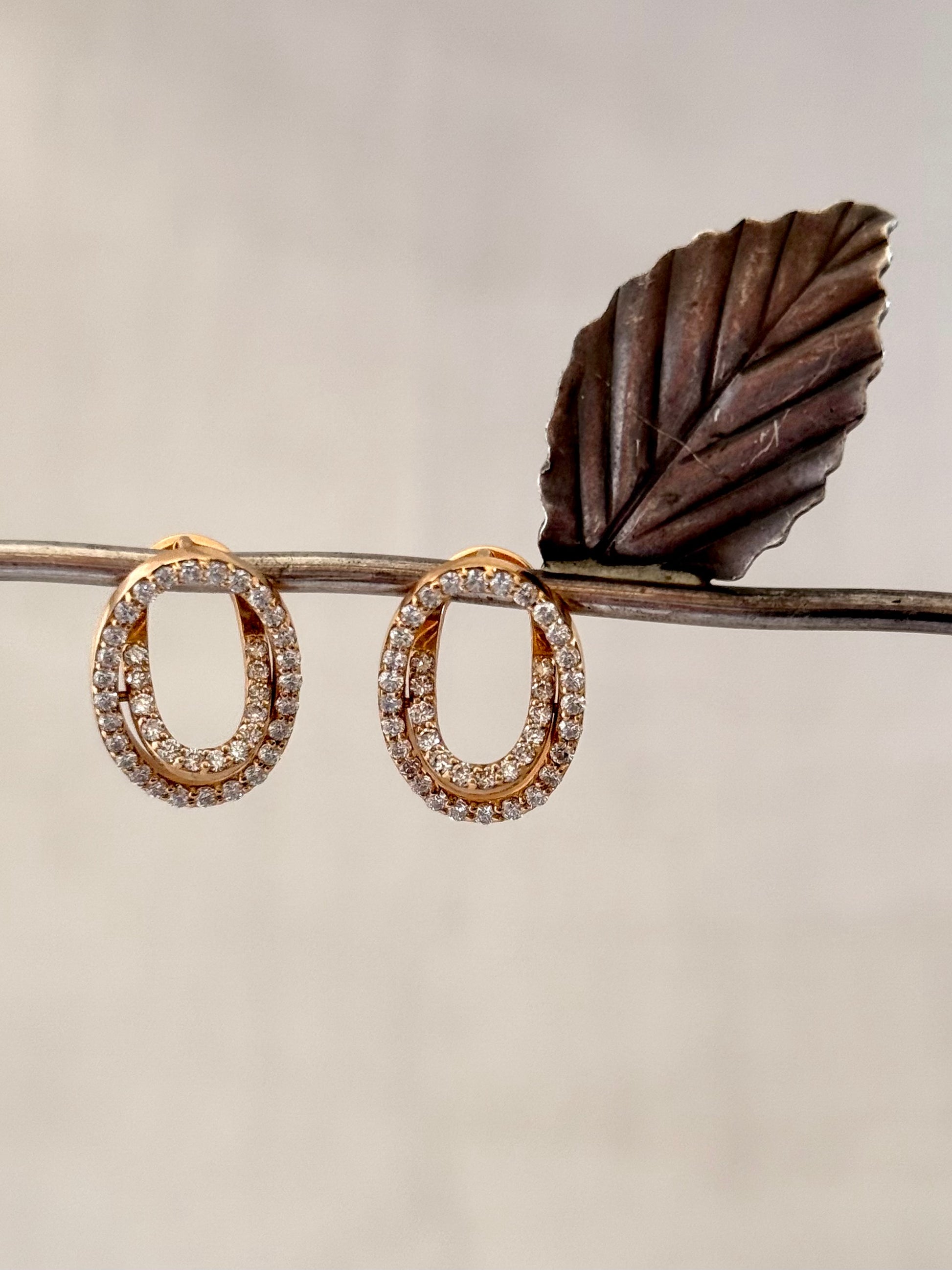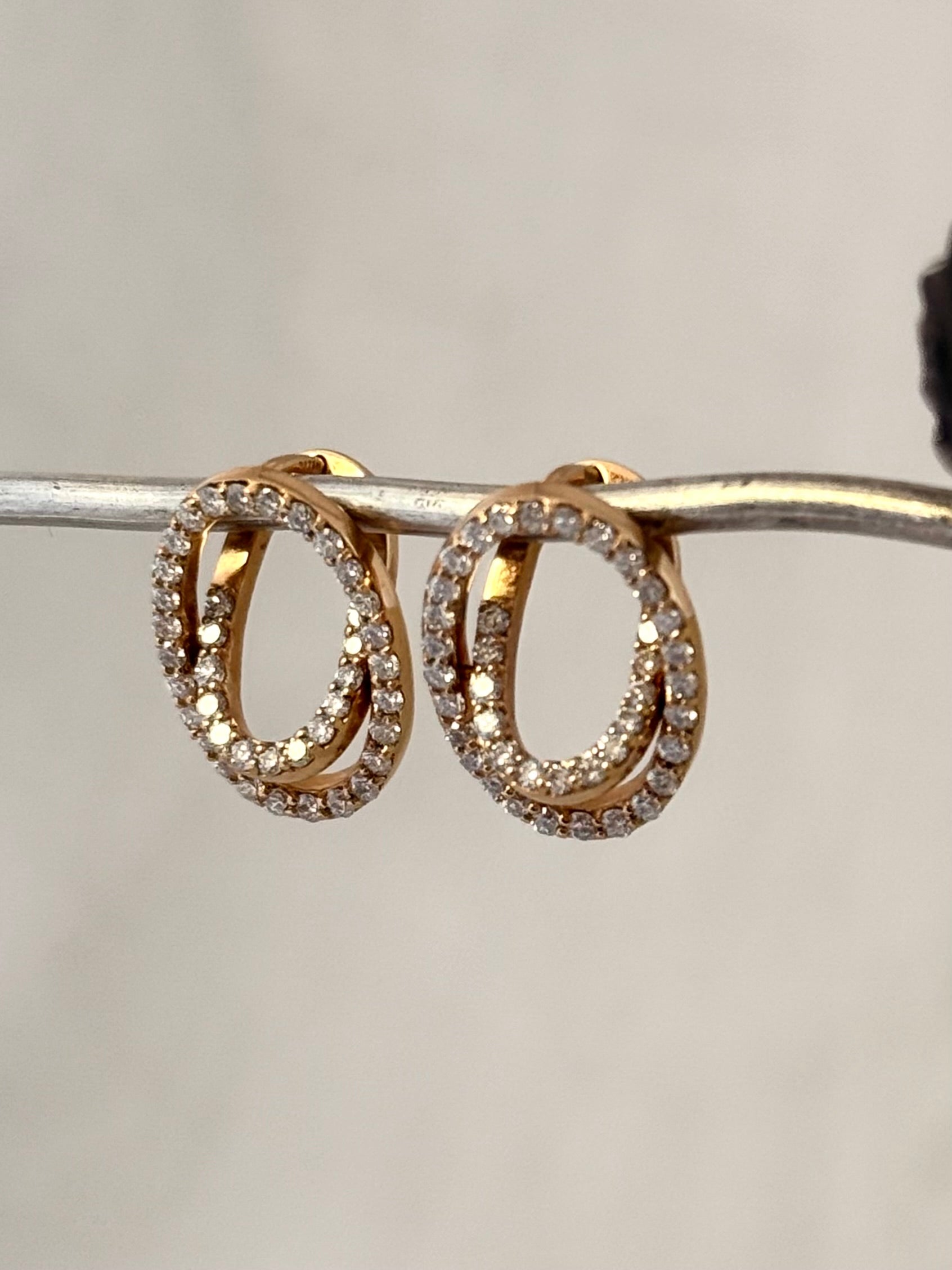 The modernist and rock-chic oval earrings are a beautiful warm Rose Gold in colour and studded with a total of 80 brilliant cut diamonds.