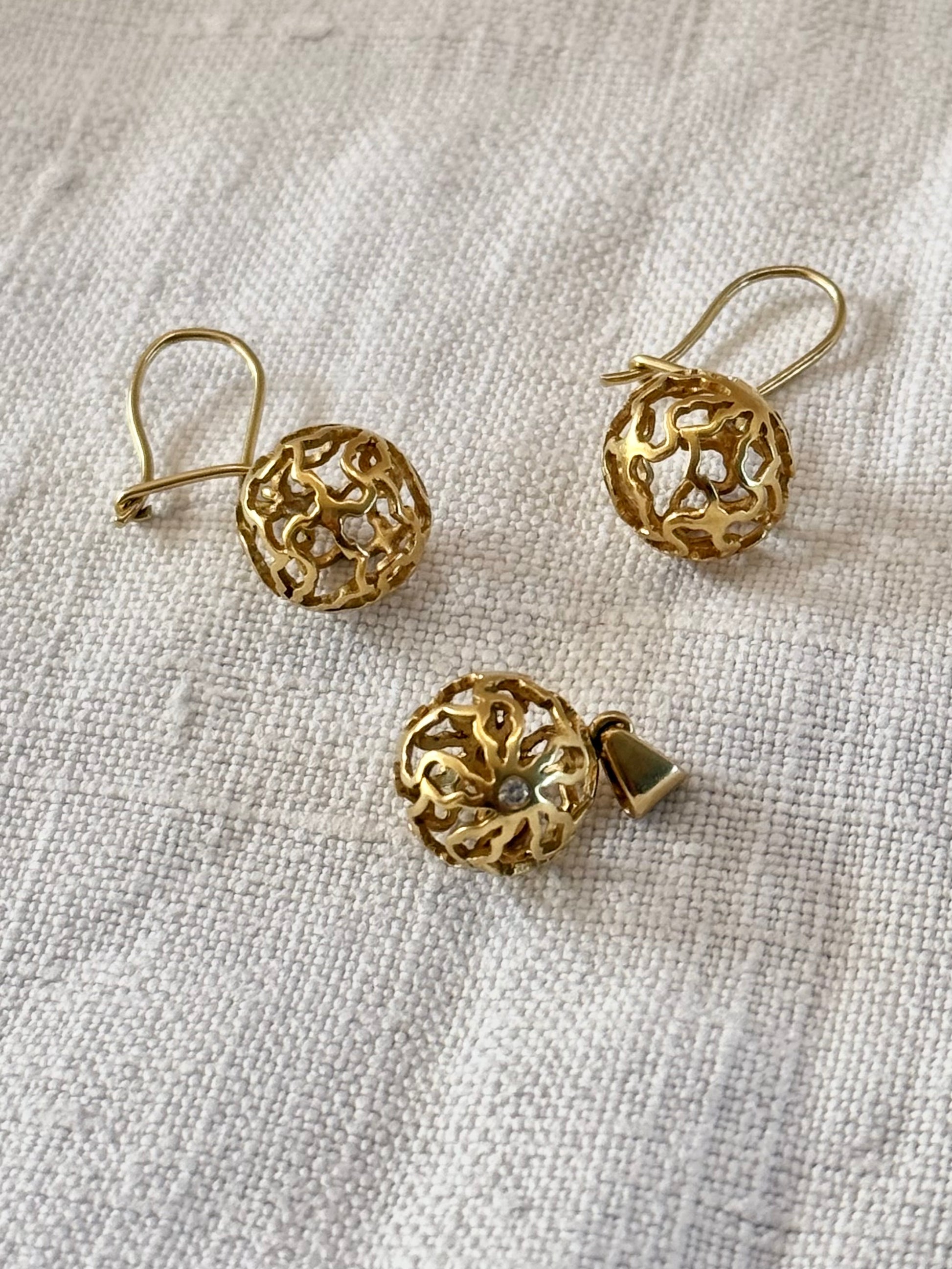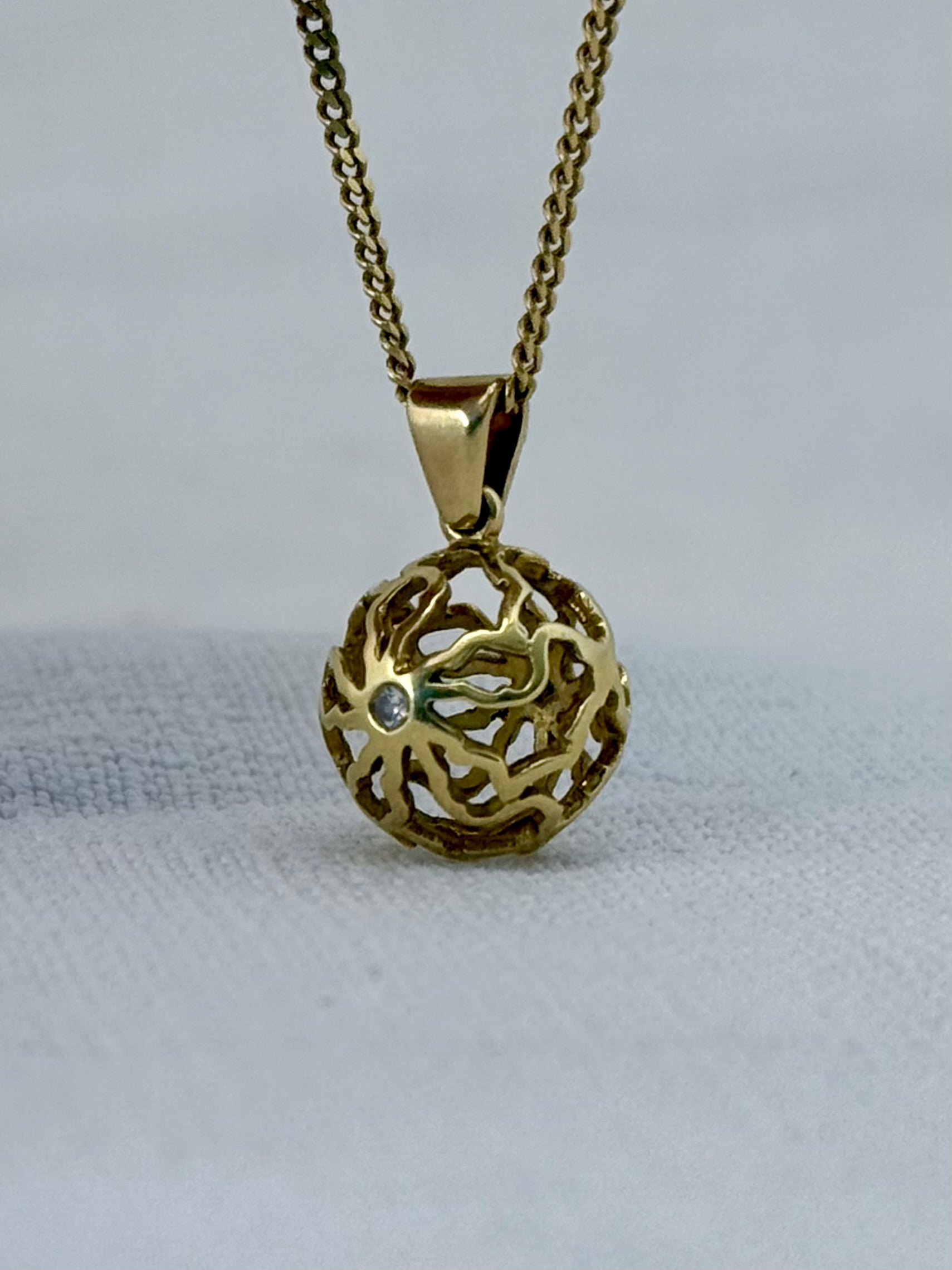 The ball pendant is clearly marked 18ct and is a true studio made heirloom pendant.