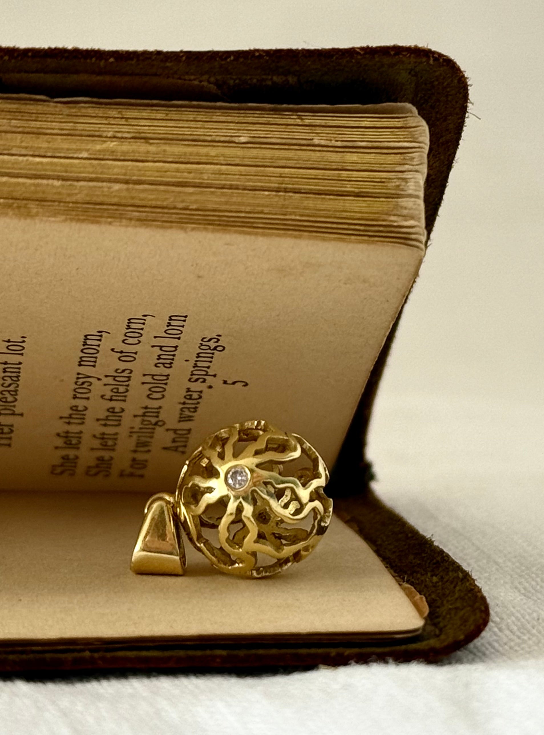 18ct .750 Africa continent High Carat Gold and Diamond globe sphere geometric artisan made gold luxury pendant