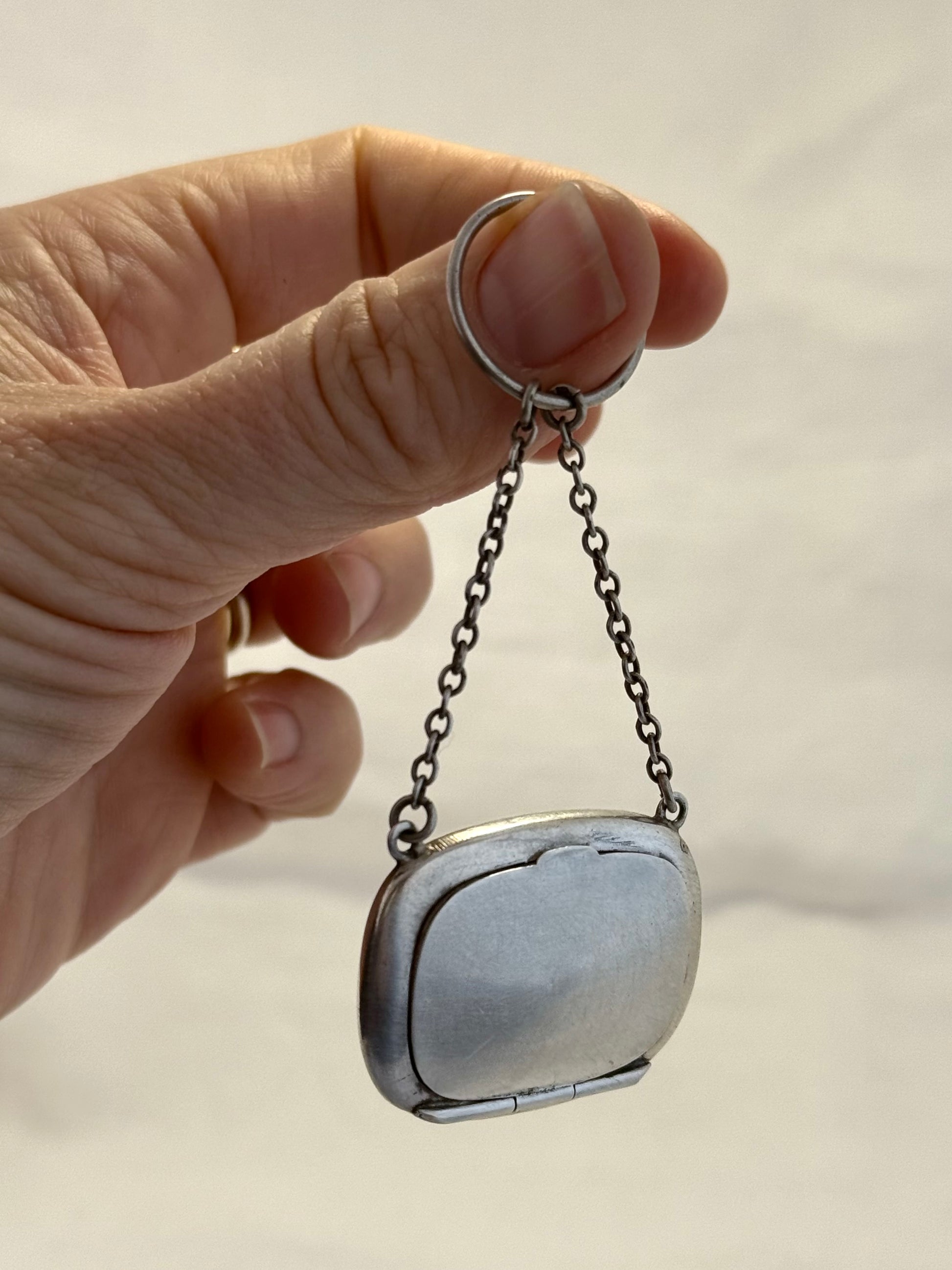 .1917 .925 antique hallmarked silver rectangular powder compact case on finger chain vanity locket