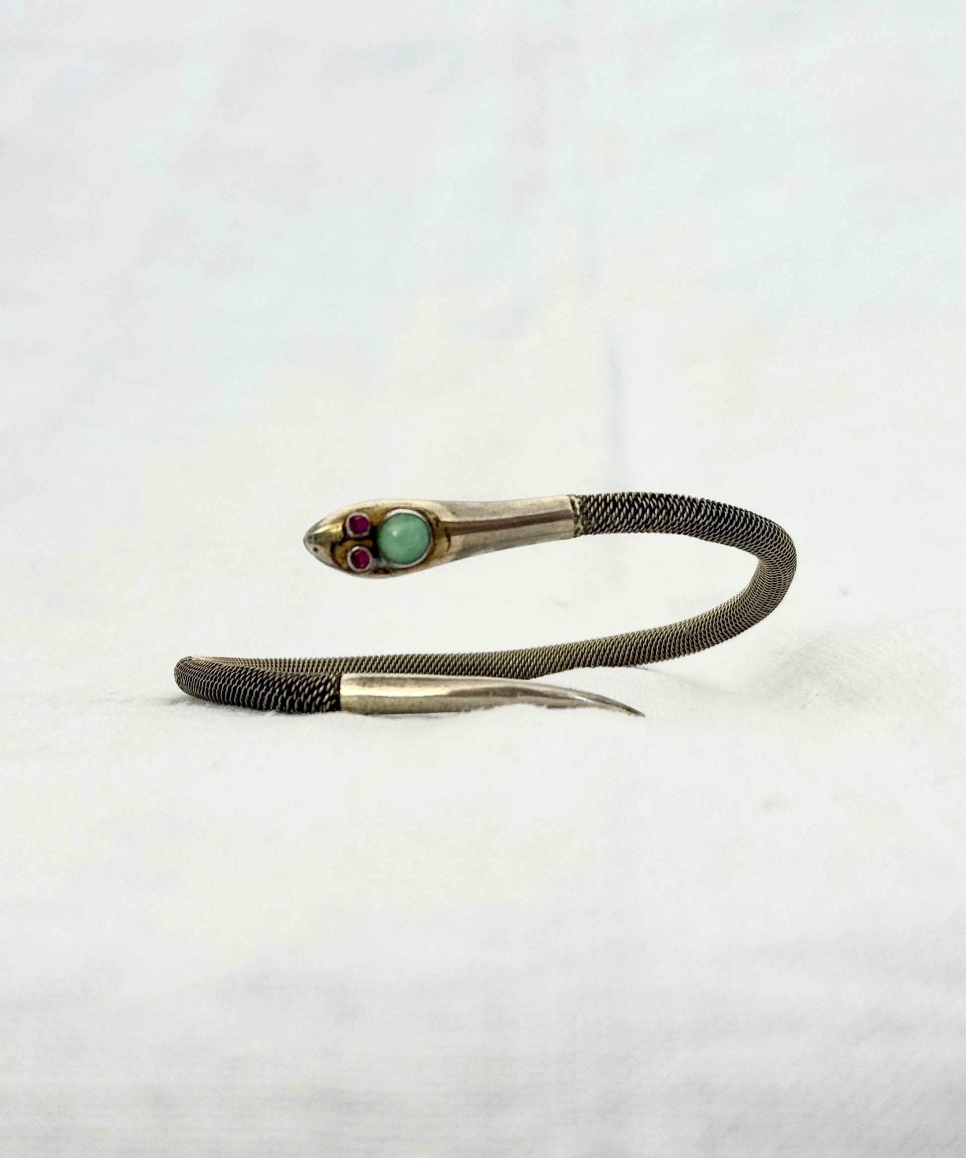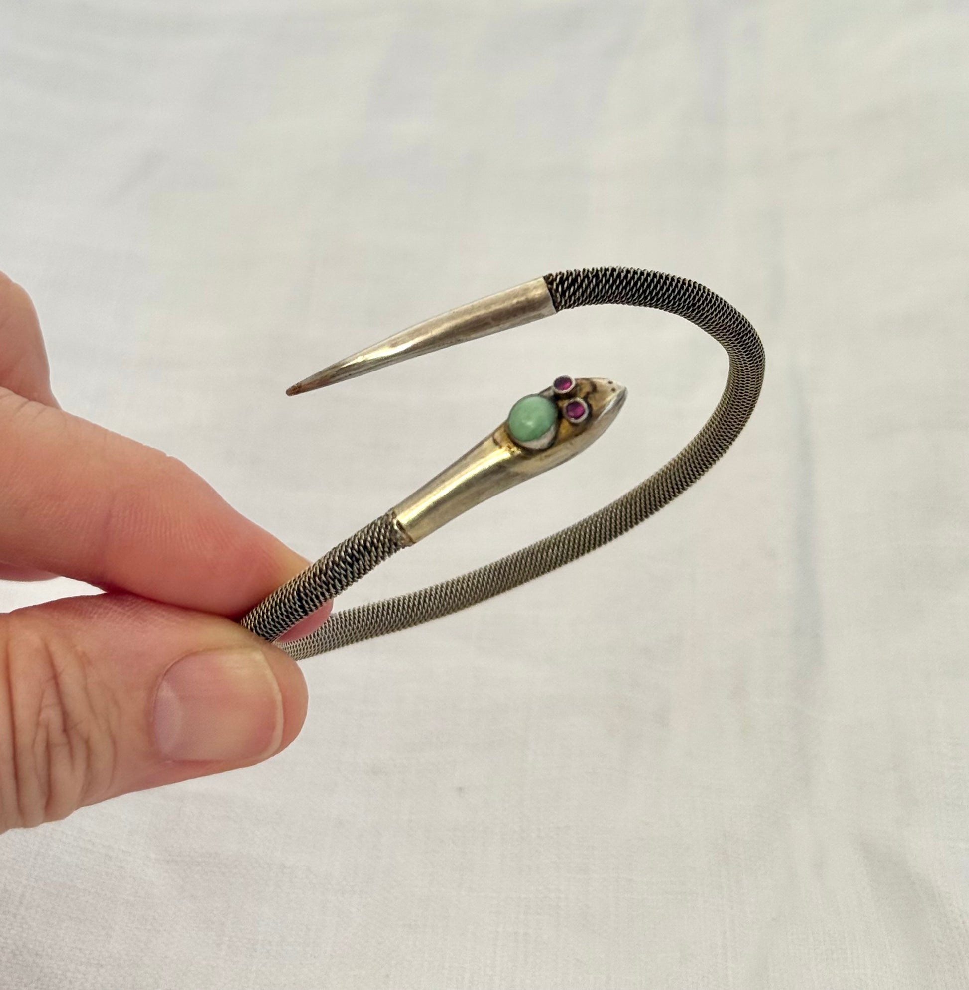 .1920s .1930s antique Victorian revival silver Snake Serpent and Chrysoprase Ruby gemstone head bangle