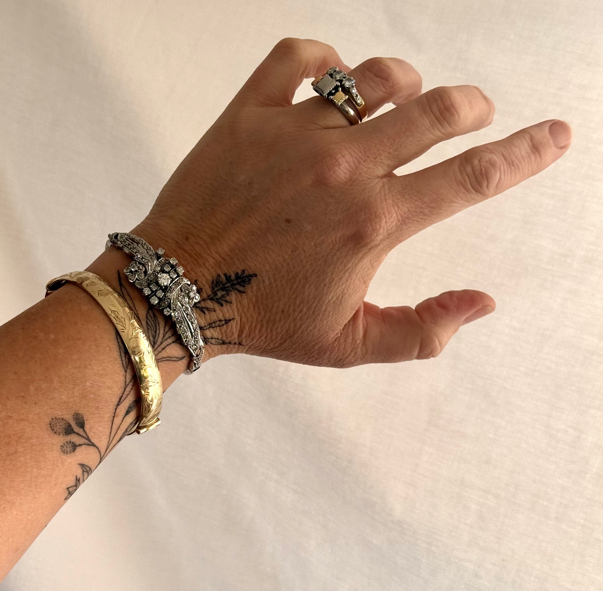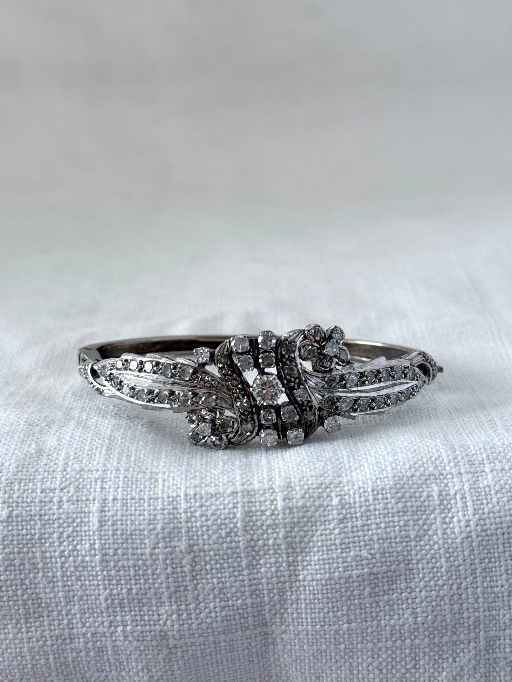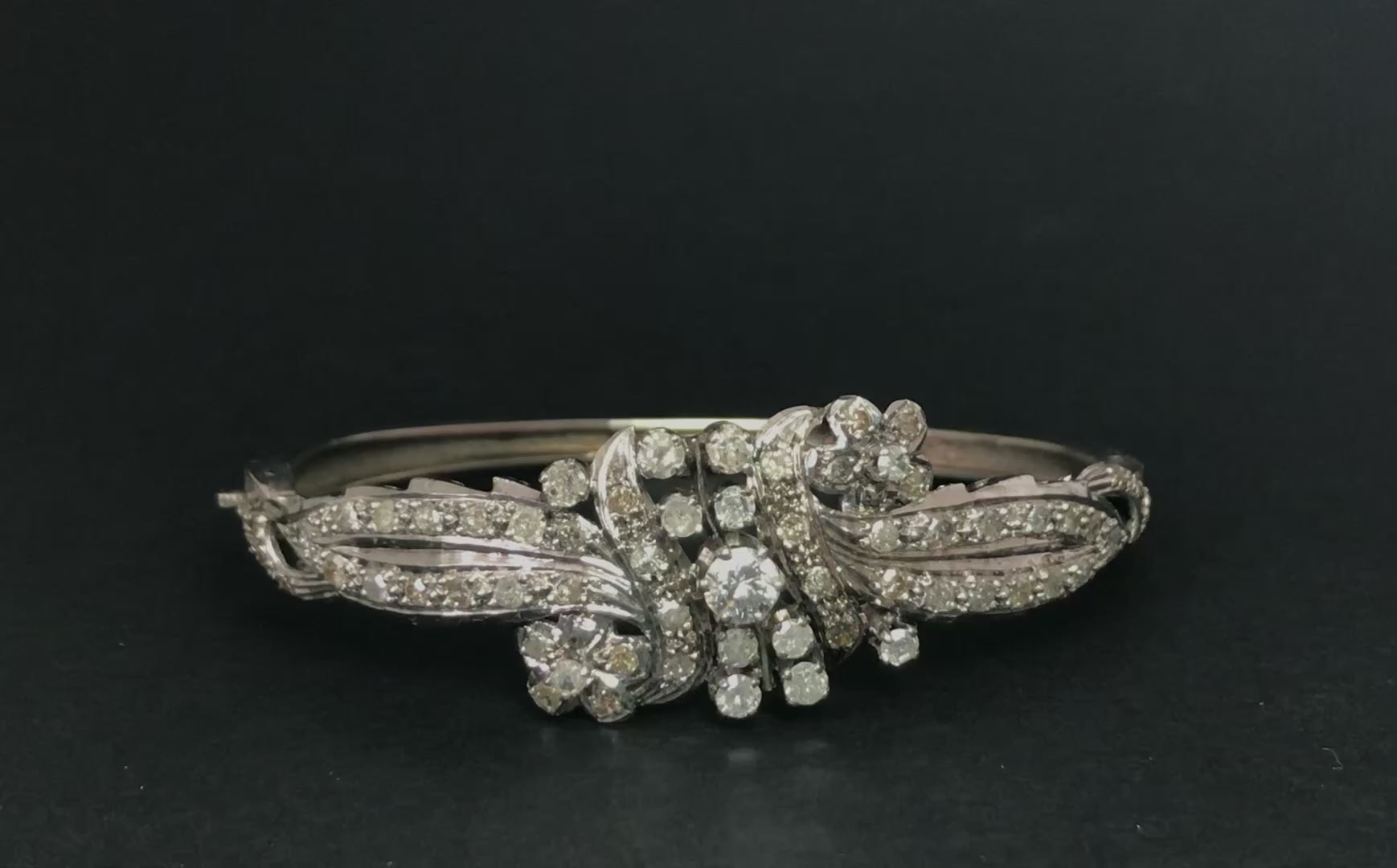 .1920s .2.38ct diamond .9ct white gold Belle Epoque revival clasp bangle