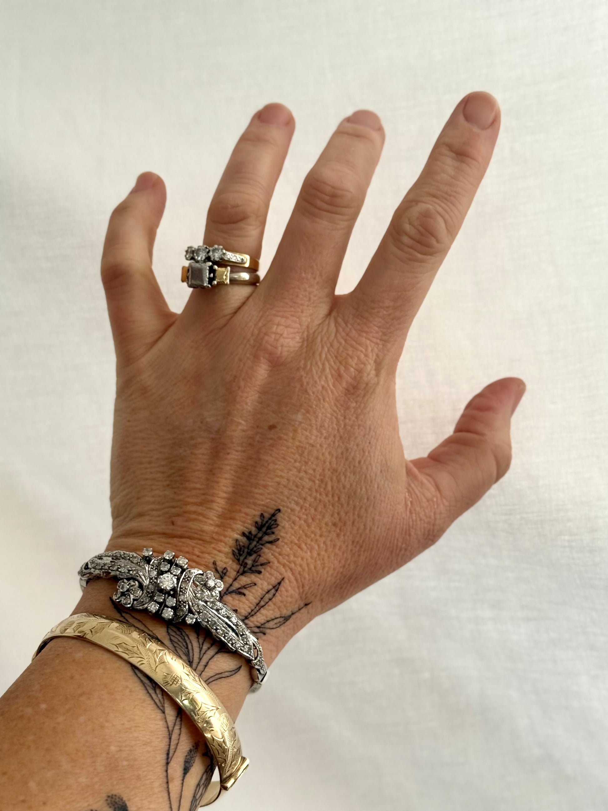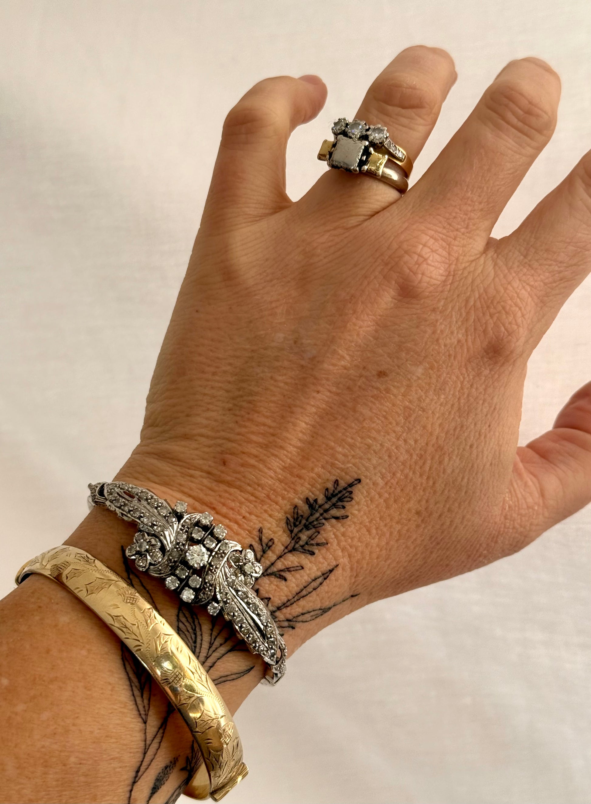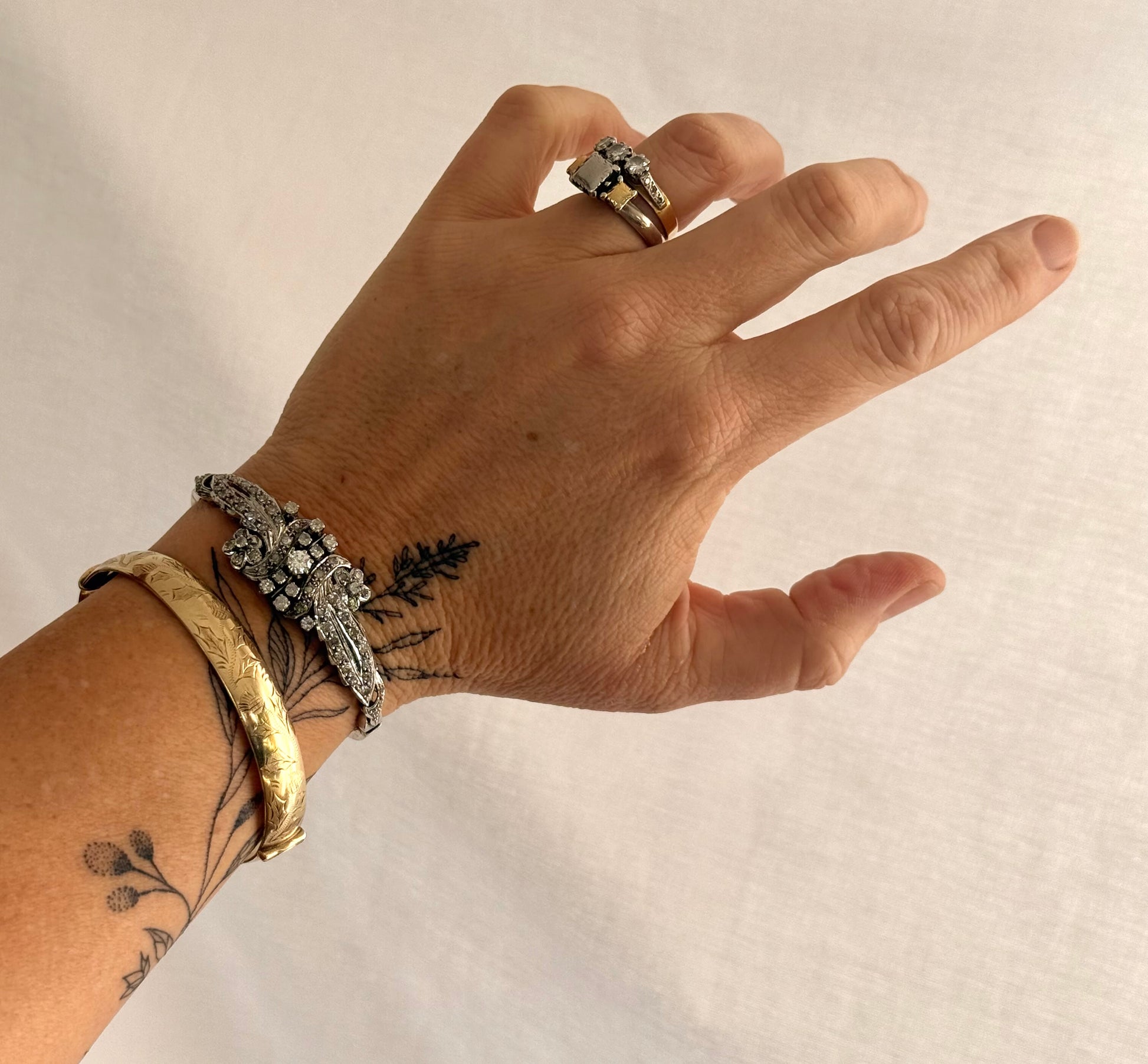 .1920s .2.38ct diamond .9ct white gold Belle Epoque revival clasp bangle