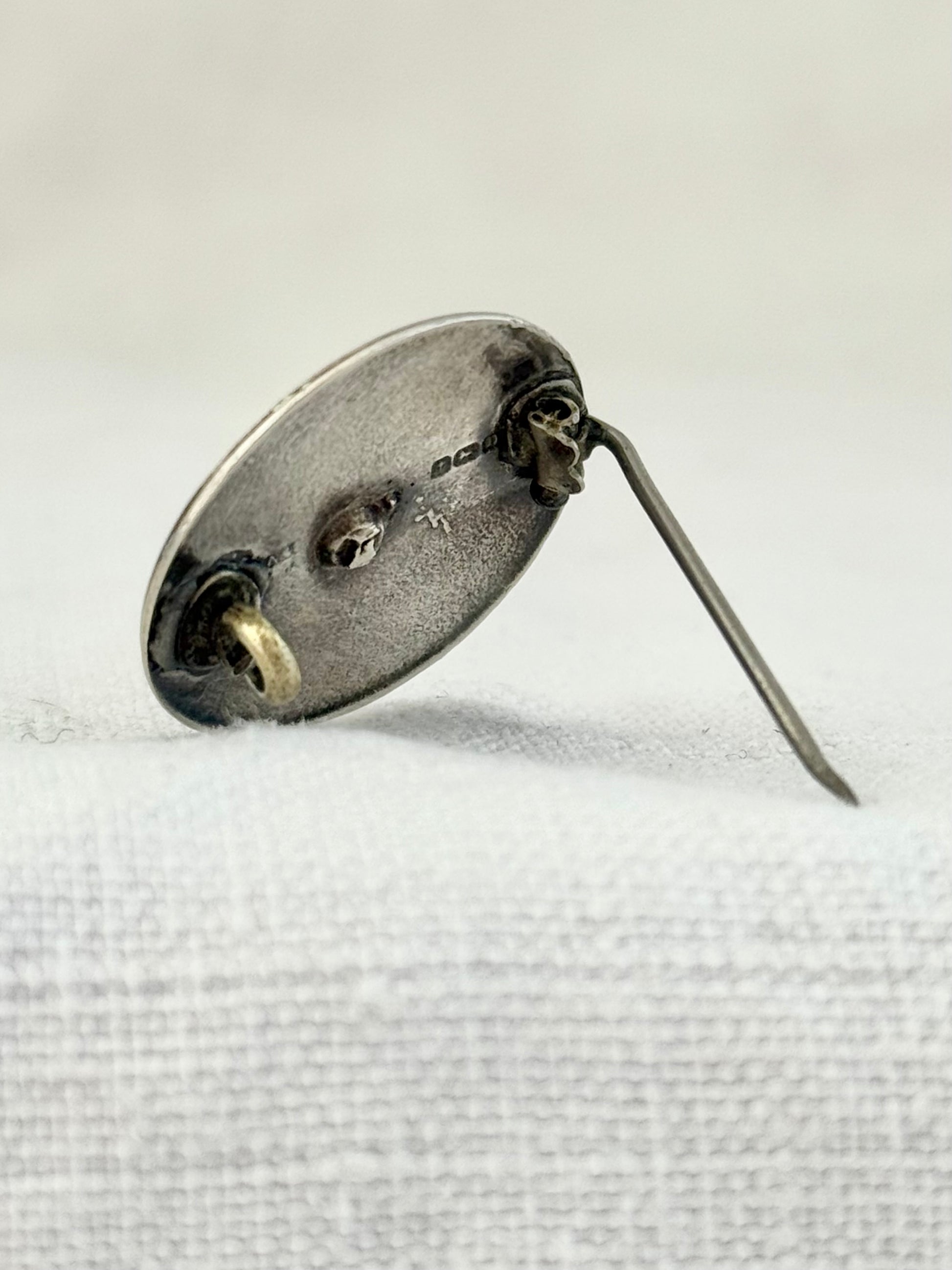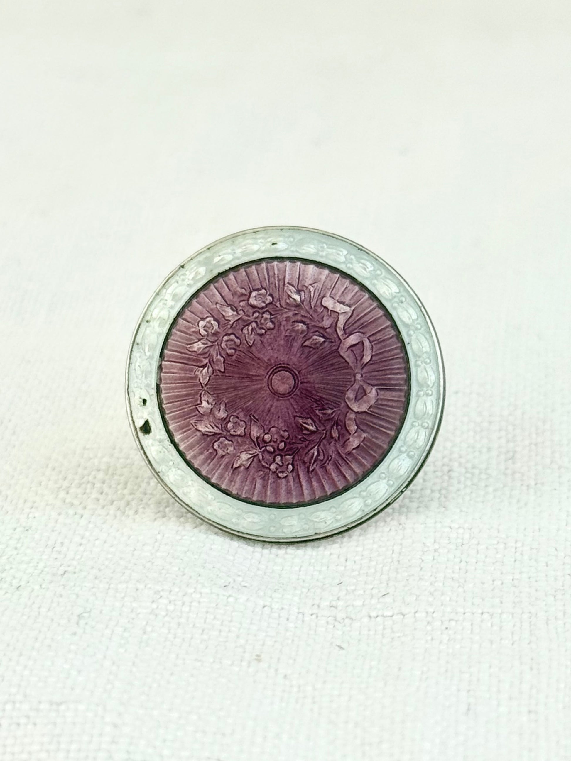 .1928 .925 Art Deco Birmingham silver lilac purple and white guilloche enamel button brooch lapel pin