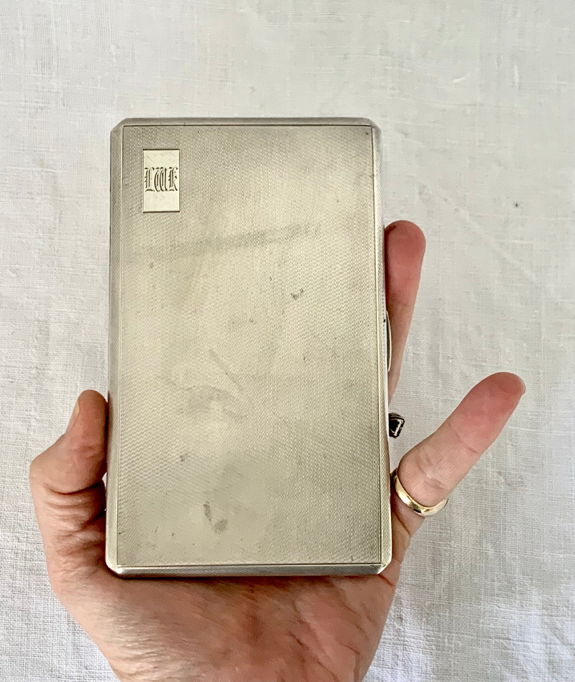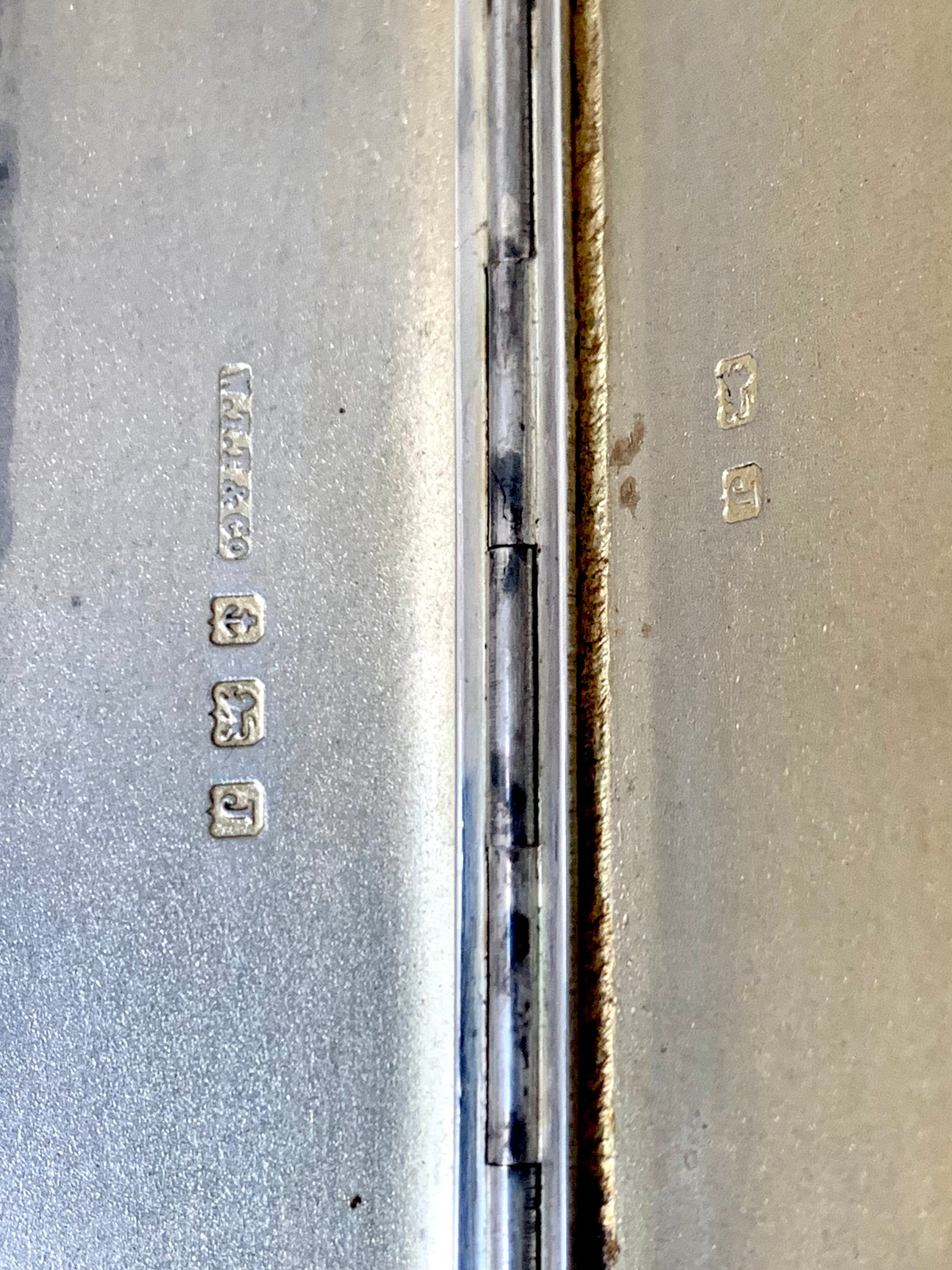 This incredible and well preserved case is really a solid and heavy silver case, weighing a substantial 208.6 grams and measures 14.3cm long x 8.5cm wide.