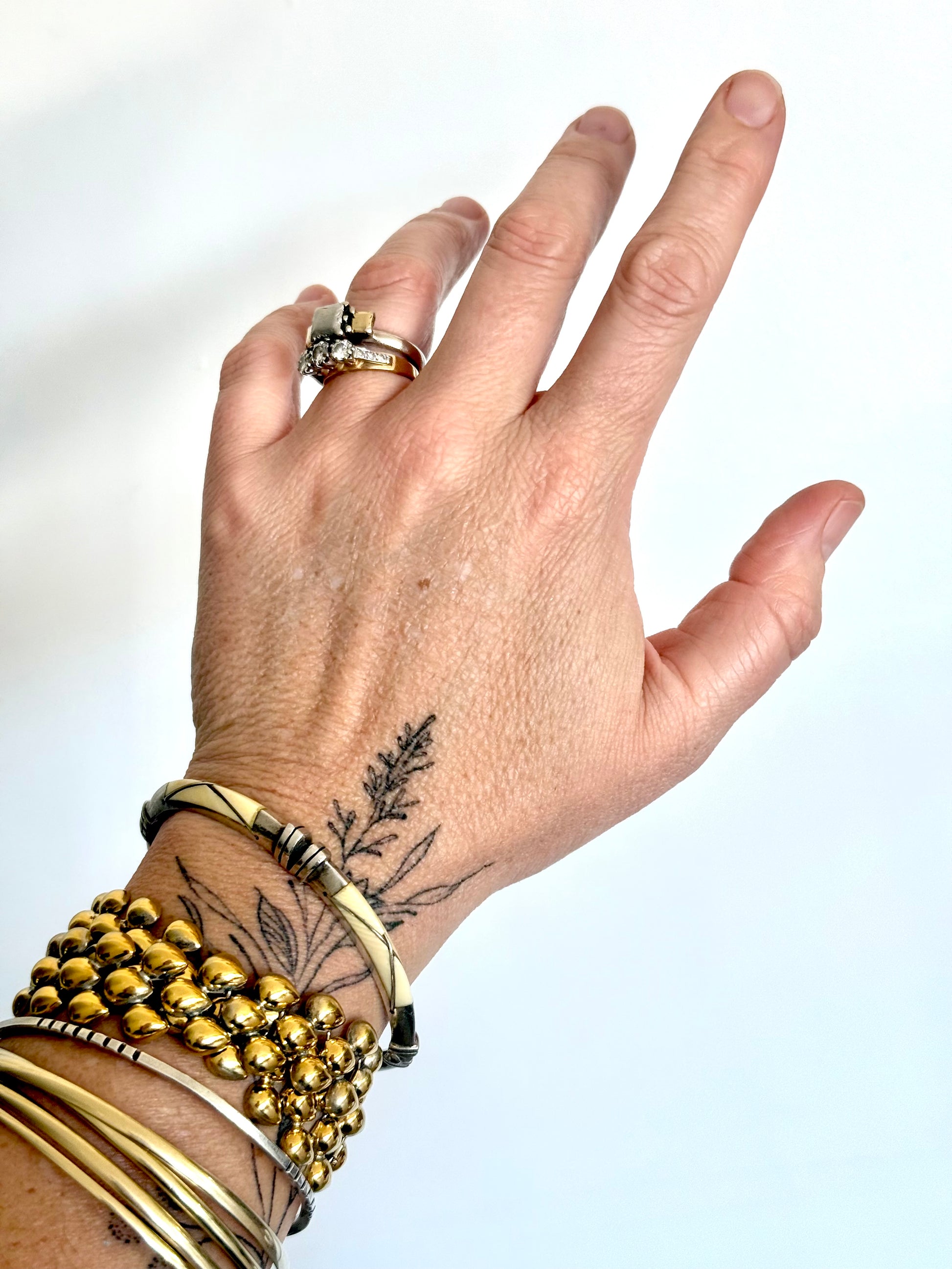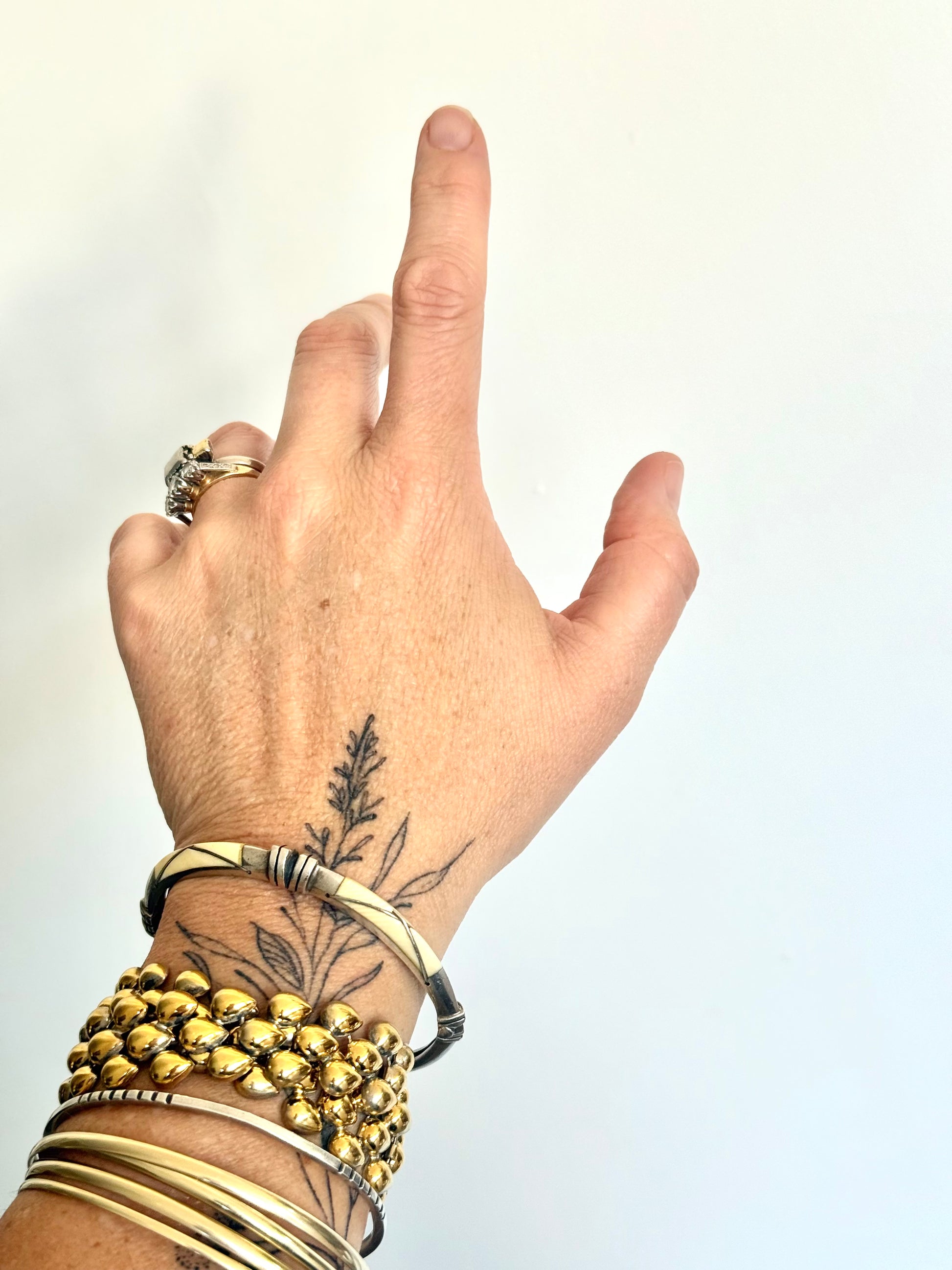 It truly is an exceptional clasp bangle that will add a mid century modern and tribal style accent to any arm.