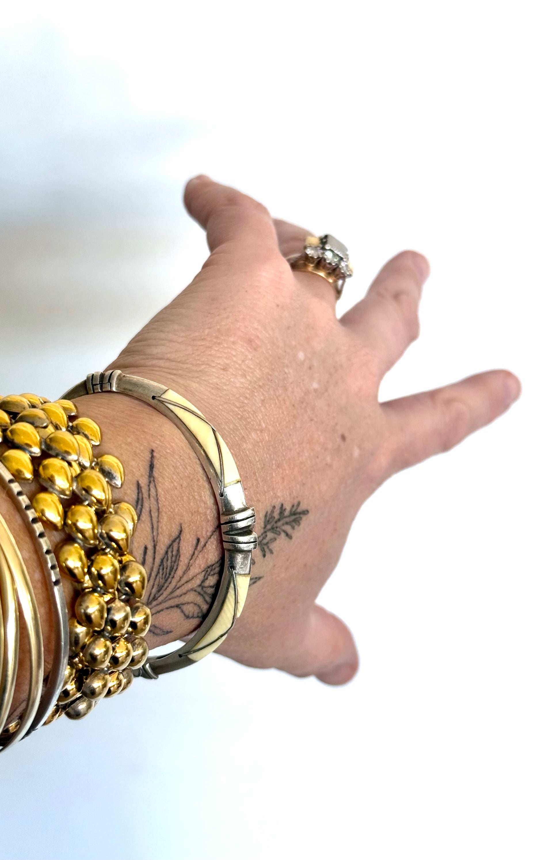.1940s .1950s .925 modernist silver and ivory inlay tribal style MCM designer clasp bangle