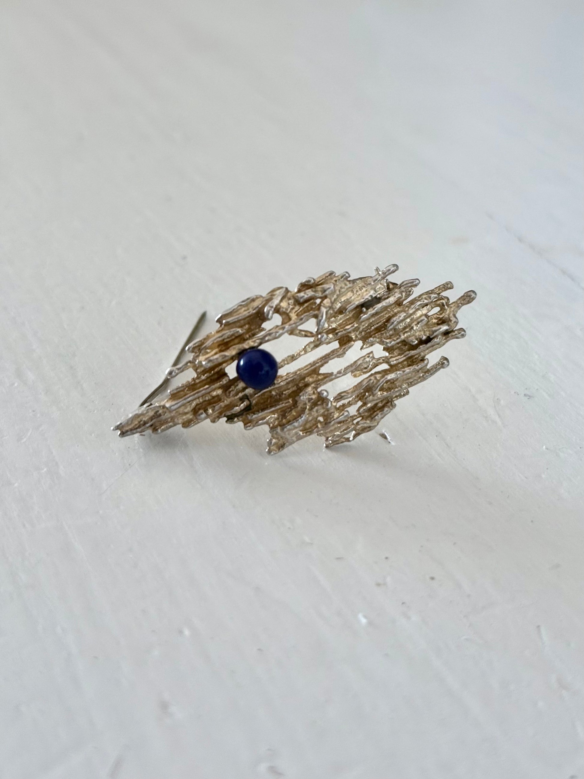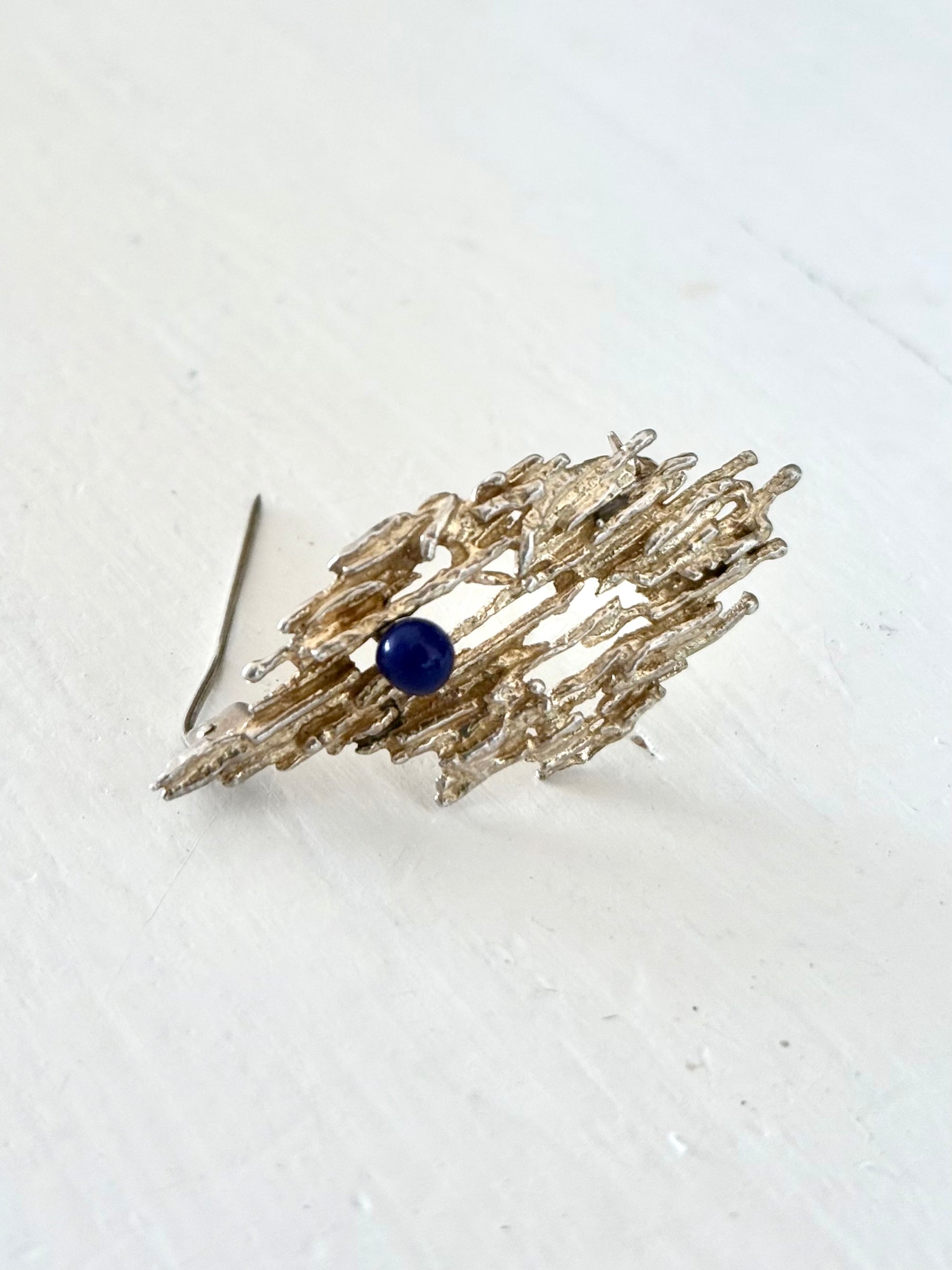 .1950s .1960s .925 brutalist Denmark silver Hermann Siersbol Lapis Lazuli designer wearable art brooch