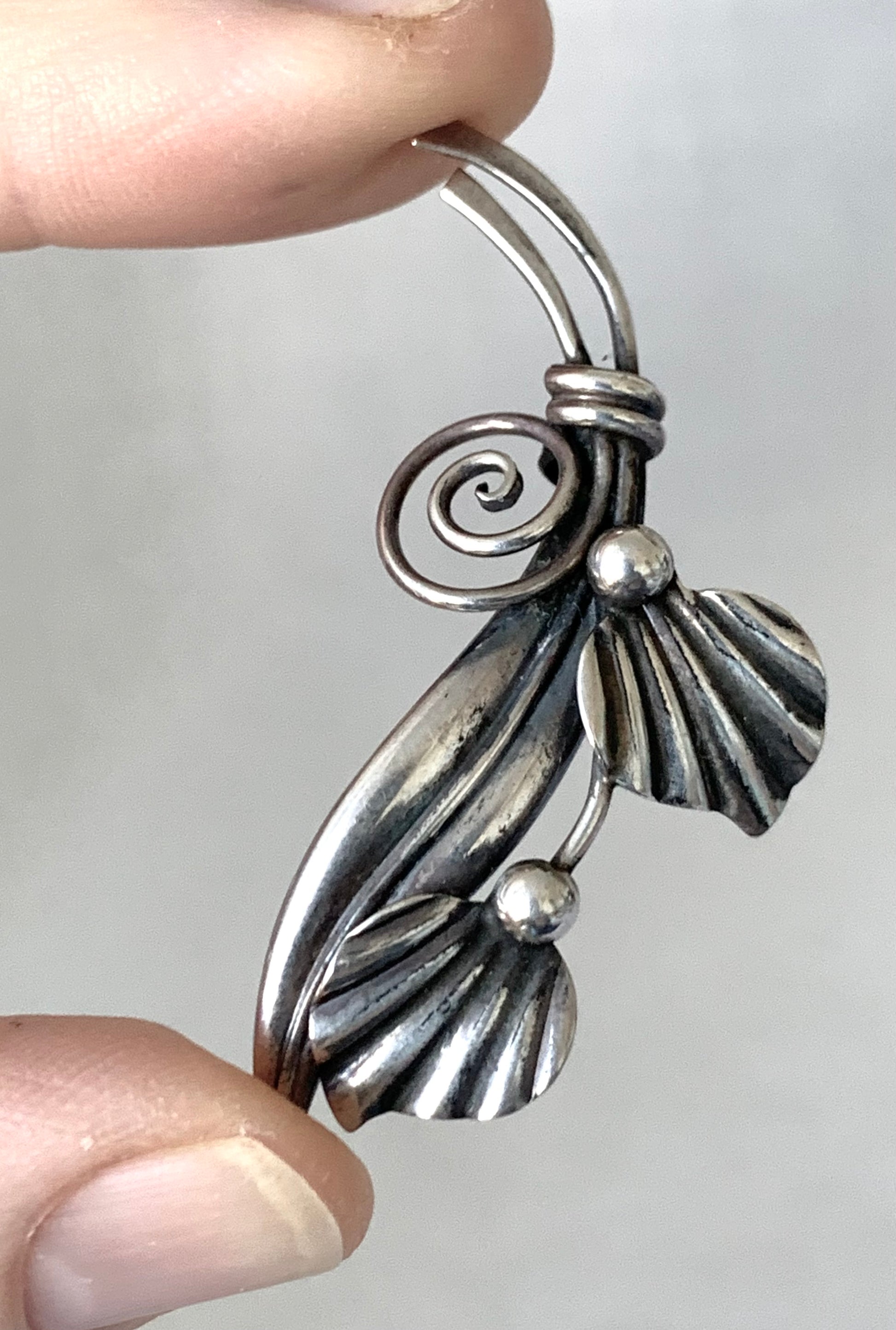 1950s 925 John Lauritzen Danish silver Mid Century Modern Scandinavian collectors leaf swirl brooch