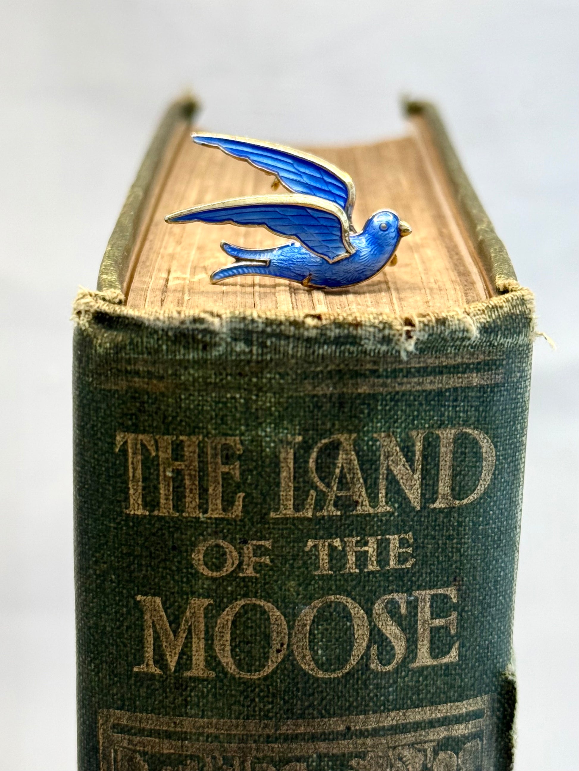 .1950s collectors bird dove royal blue enamel brooch by Hans Myhre of Oslo Norway