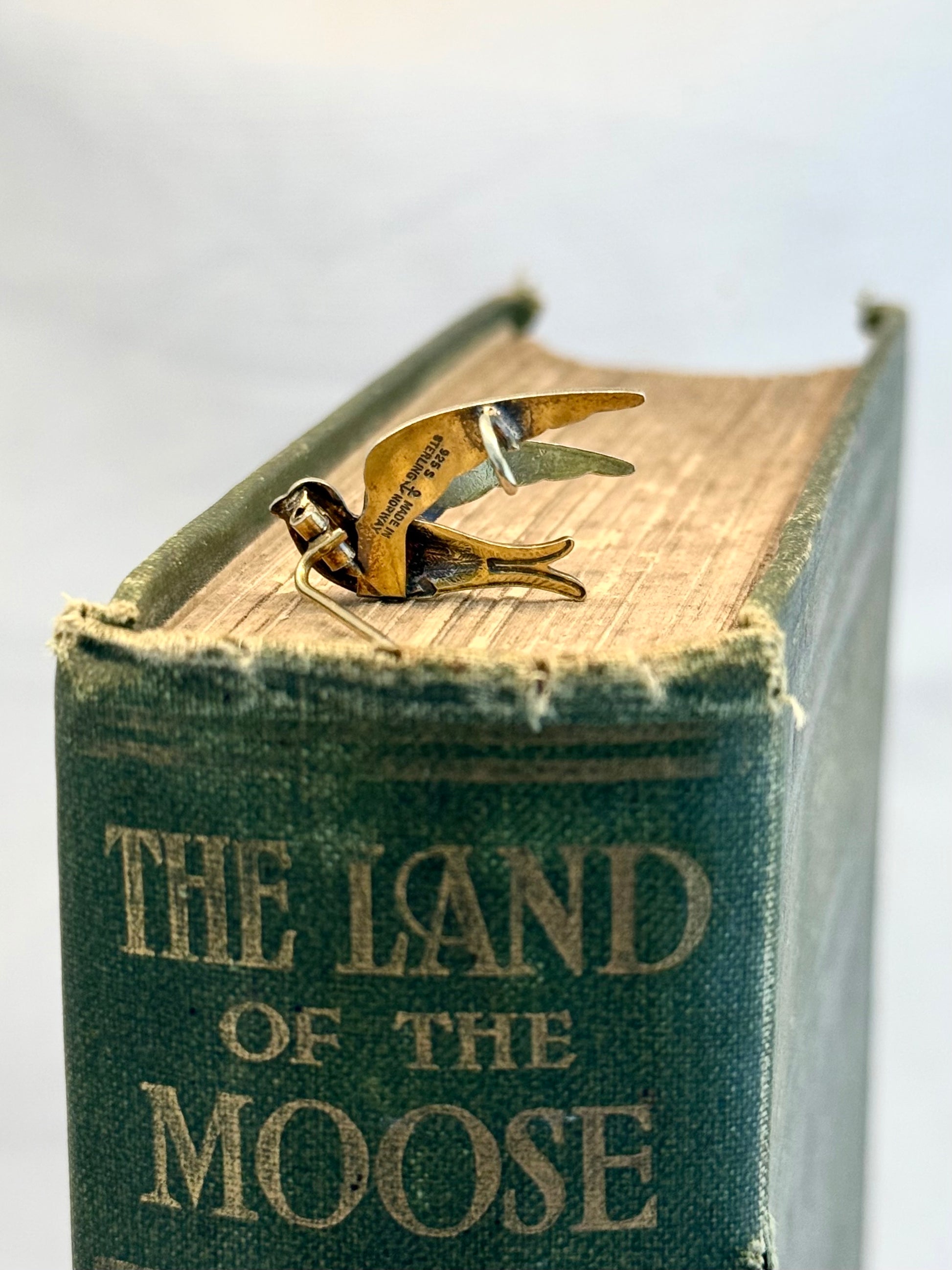 The wings of the blue bird dove sits proud of the brooch, allowing the appearance of flight and motion to the bird.