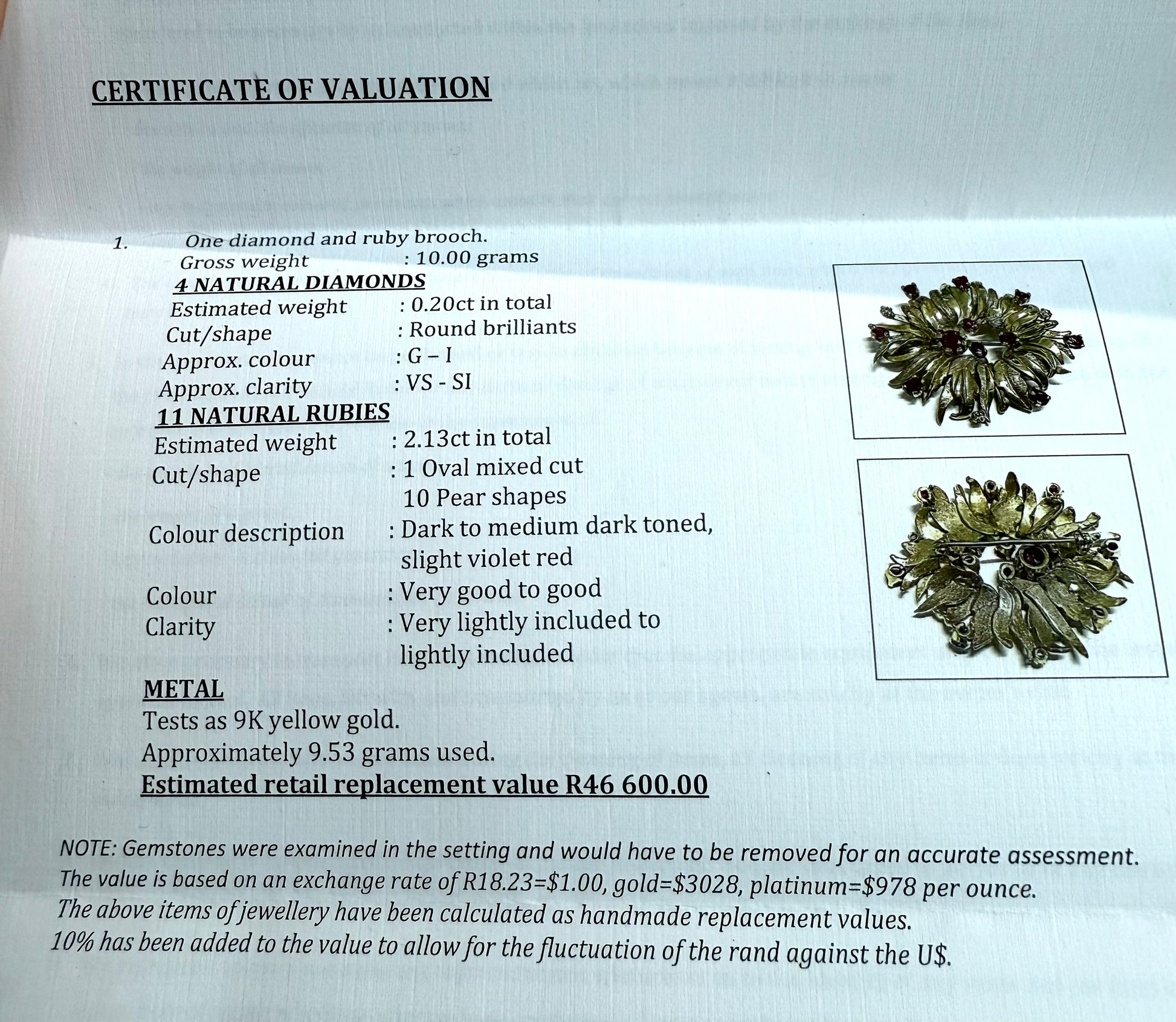 This beautiful brooch is unsigned but has been graded to be studio made in 9ct gold and has been valued by a reputed Gemmologist to the replacement value of R46600.00.
