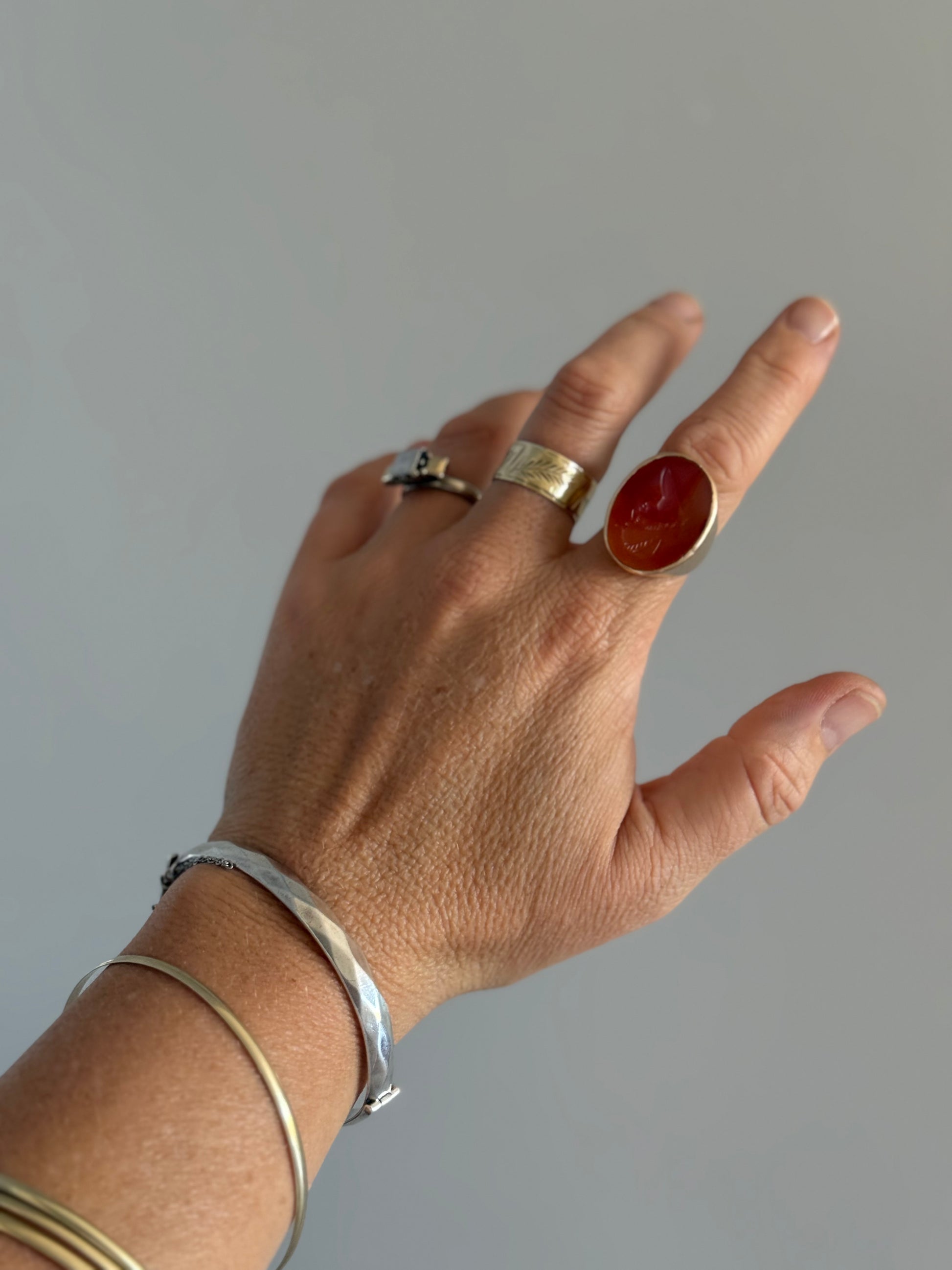The bangle has a width of 7mm. The sterling silver bangle weighs a solid 21.7grams.
