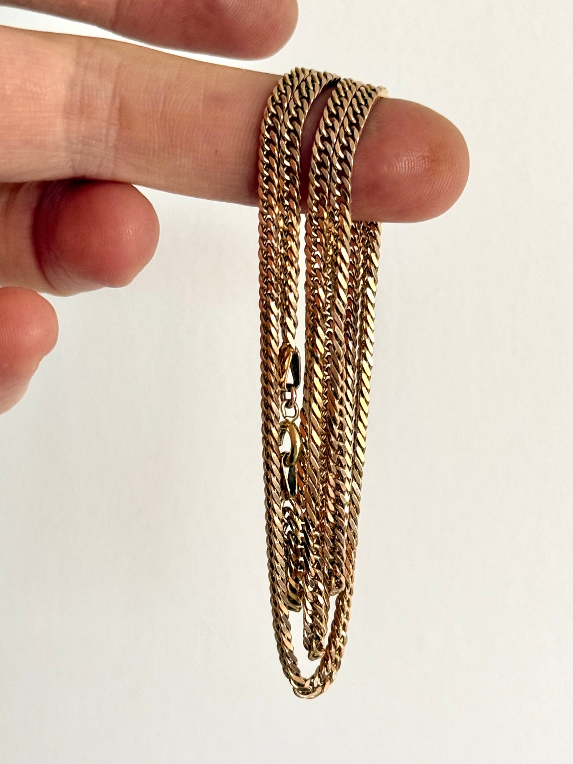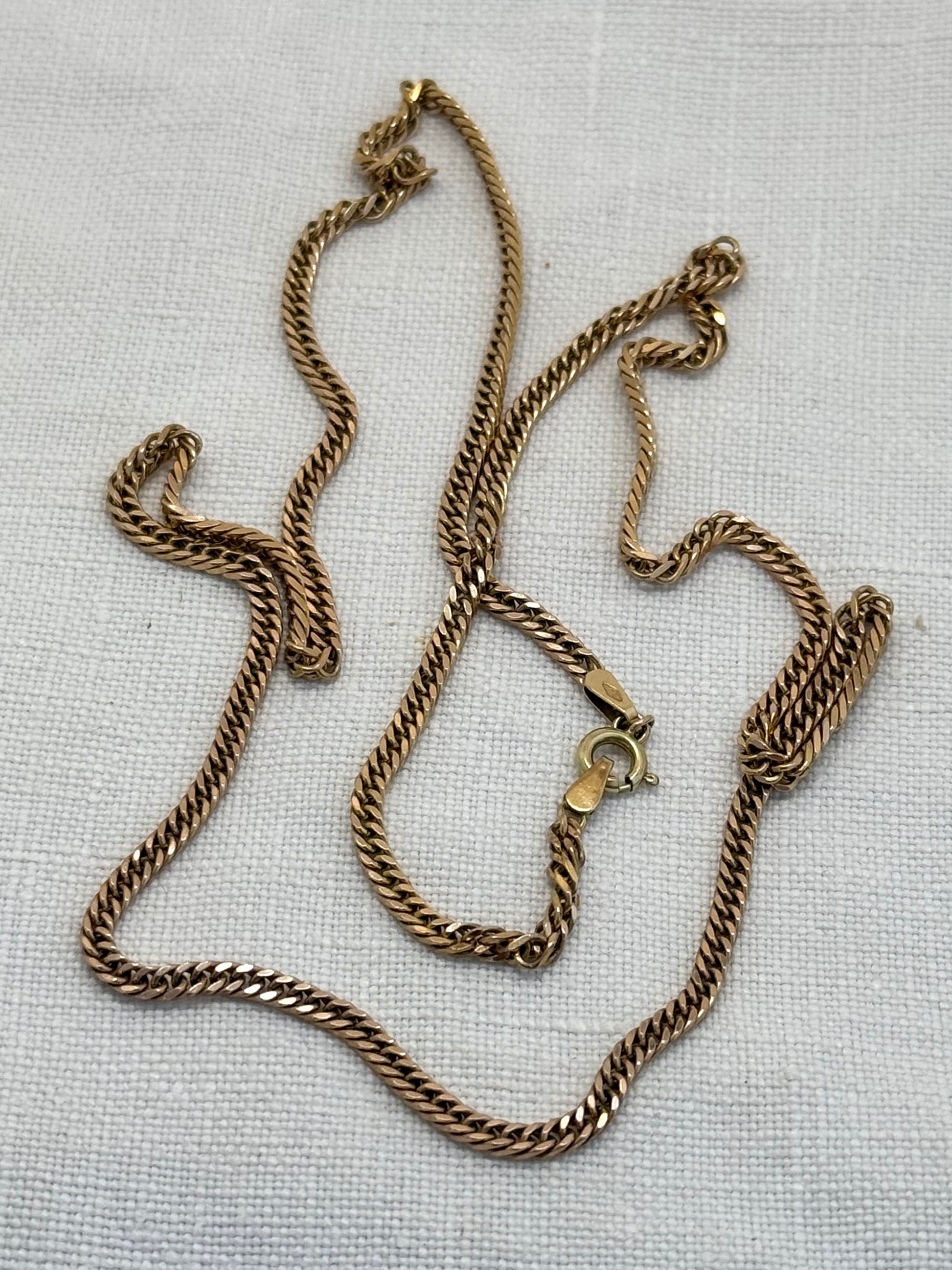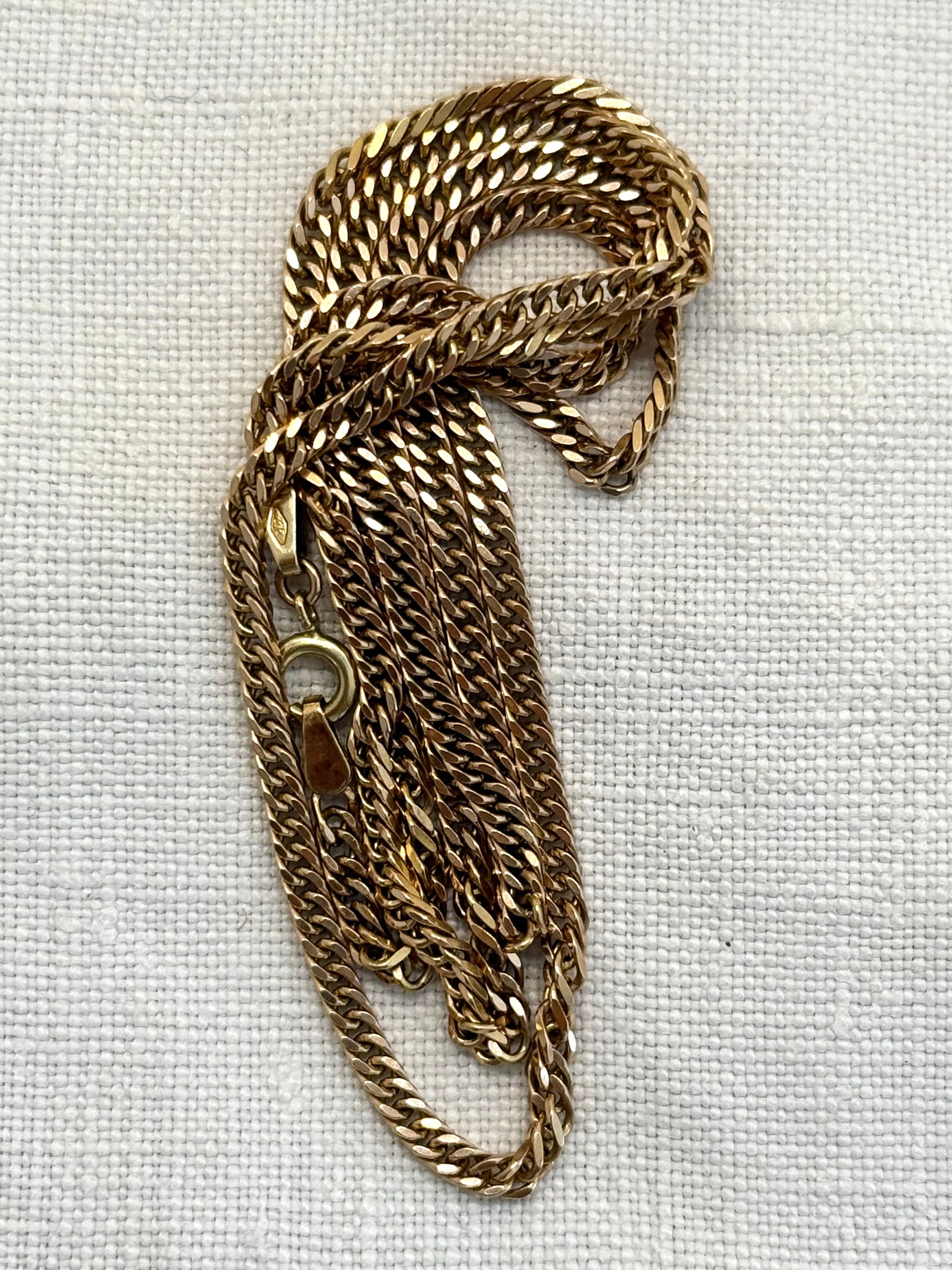 .1970s .375 .9ct gold gorgeous and luxurious flat chunky modernist curb chain 61.5cm long buttery gold chain necklace