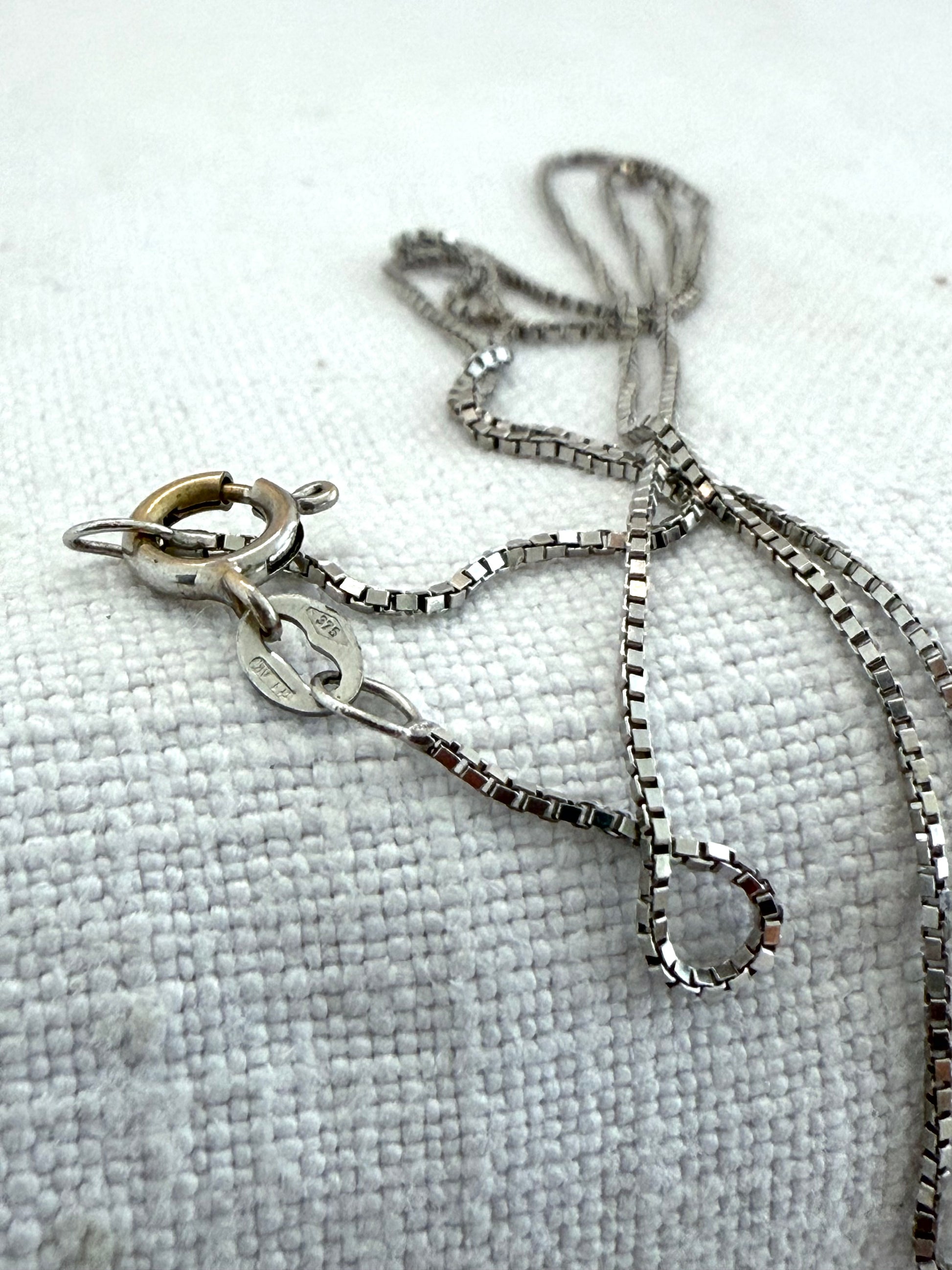 The lovely modernist white gold box chain runs a good 46cm in length and is strong and perfect for daily wear. It has a beautiful shimmer and movement to it.